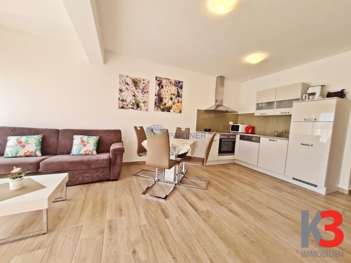 Zum Verkauf steht eine schöne 3-Zimmer-Wohnung mit Meerblick in Podstrana, 2. Reihe vom Meer entfernt.