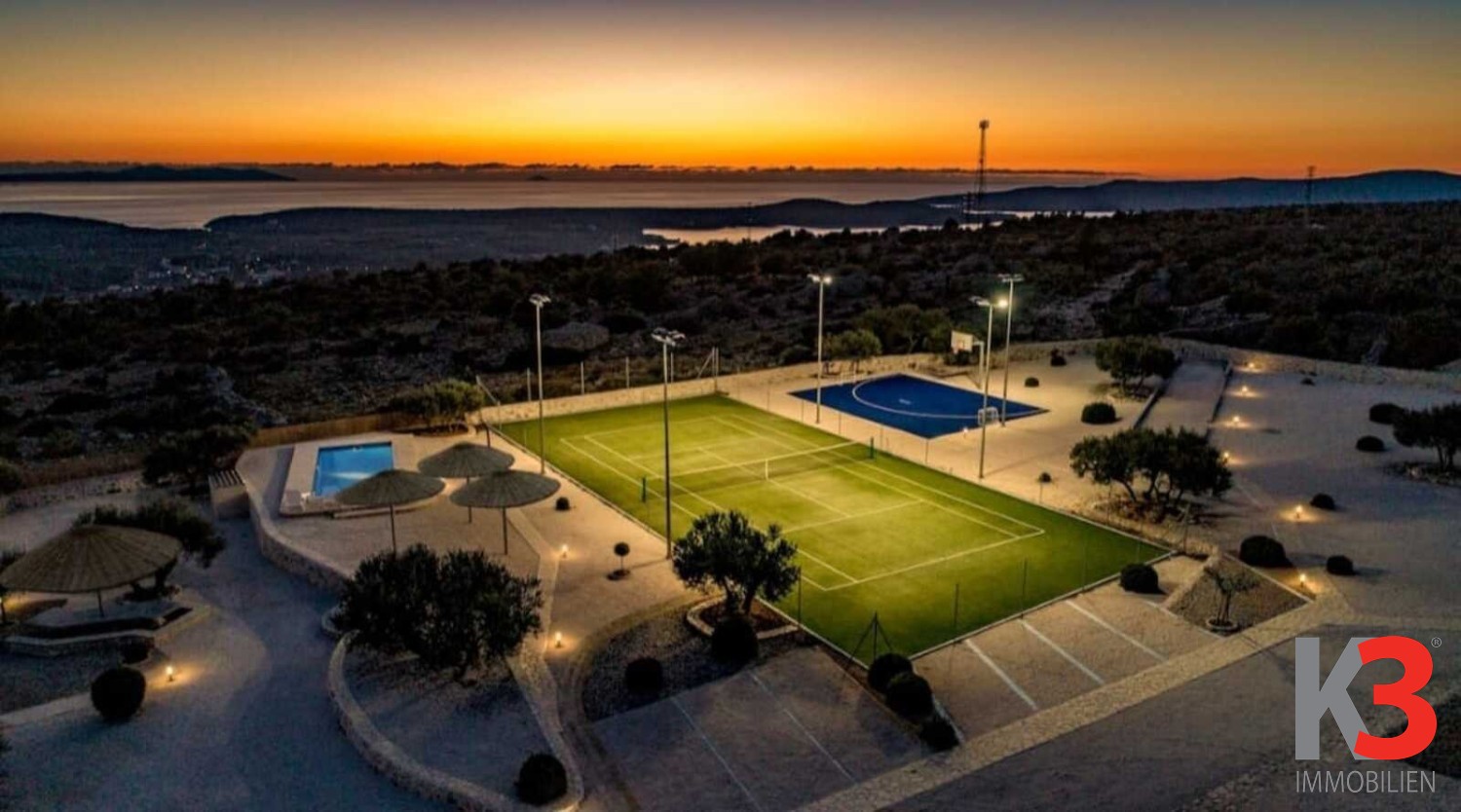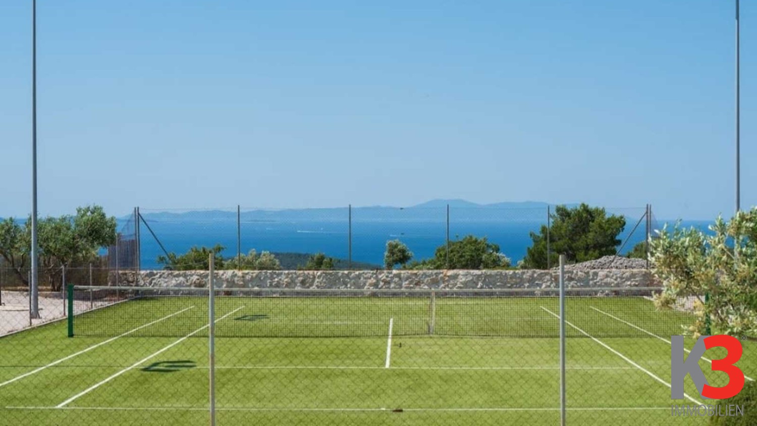 Diese luxuriöse Immobilie zum Verkauf befindet sich auf einem Anwesen, das von völliger Stille und unberührter Natur umgeben ist, nur wenige Minuten Fahrt vom kristallklaren Meer und dem Zentrum von Milna auf der Insel Brač entfernt.