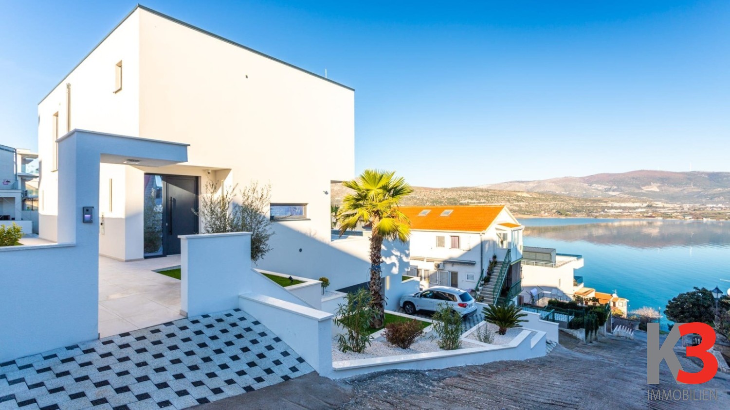 In ausgezeichneter Lage auf Čiovo, im ruhigen Ortsteil Mastrinka, befindet sich diese neu erbaute, modern konzipierte Villa, die durch ihre Architektur und Lage ein Gefühl von Luxus, Privatsphäre und direkter Verbundenheit mit dem Meer vermittelt. Die Villa liegt auf einem Grundstück von 500 m², verfügt über eine gesamte Wohnfläche von 280 m² und erstreckt sich über drei sorgfältig geplante Etagen. Ein offener, panoramischer Meerblick begleitet die Immobilie aus nahezu allen Bereichen und unterstreicht die Exklusivität dieses Angebots zusätzlich.