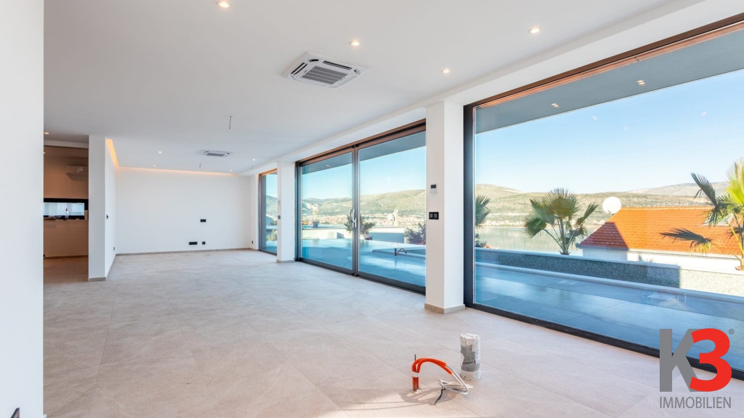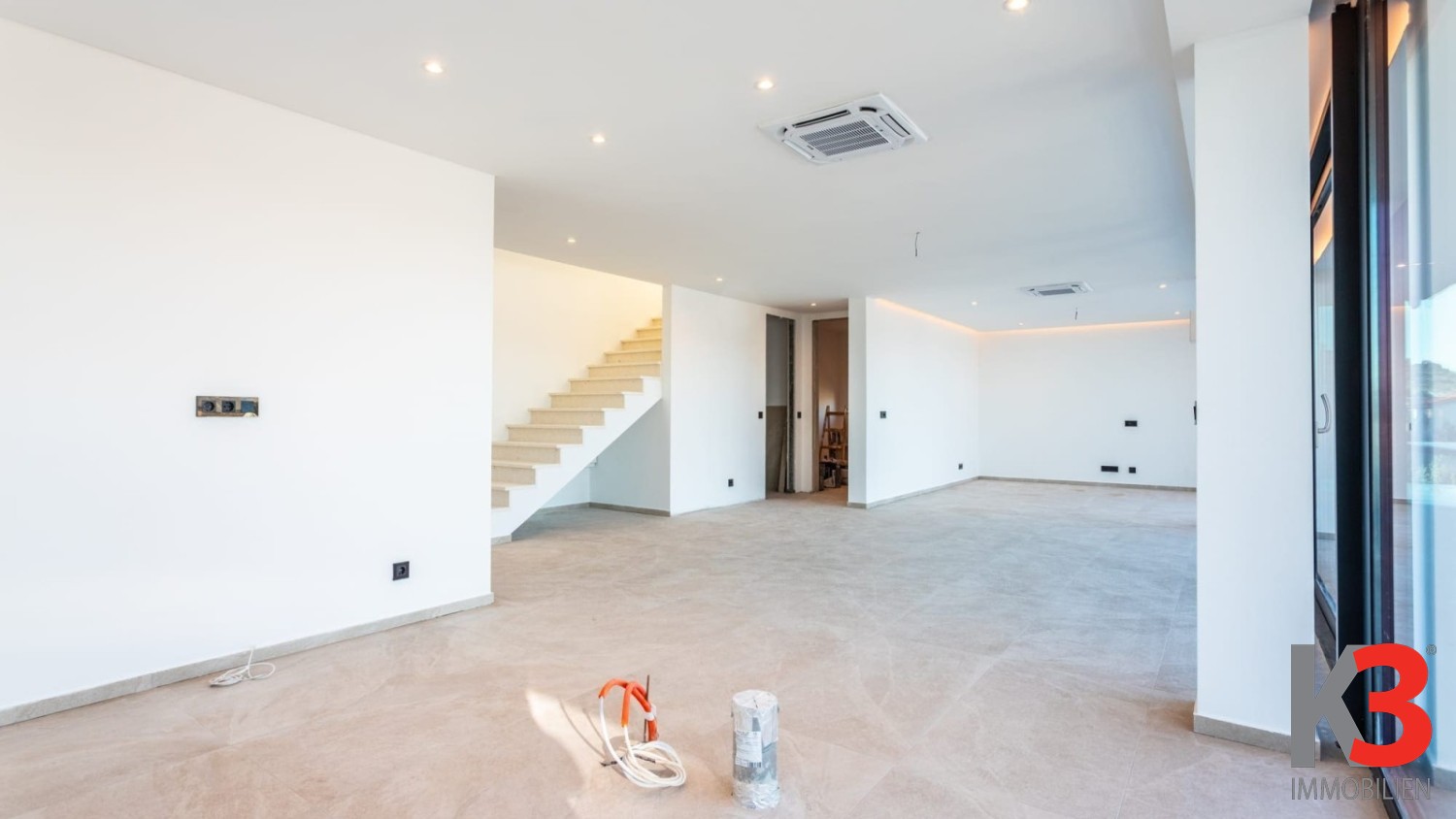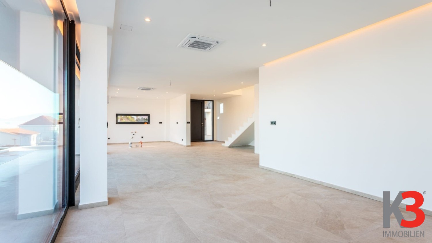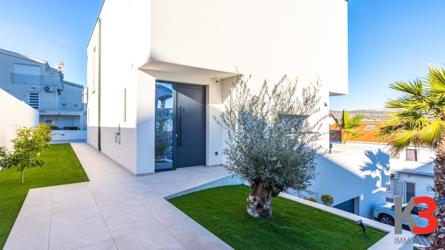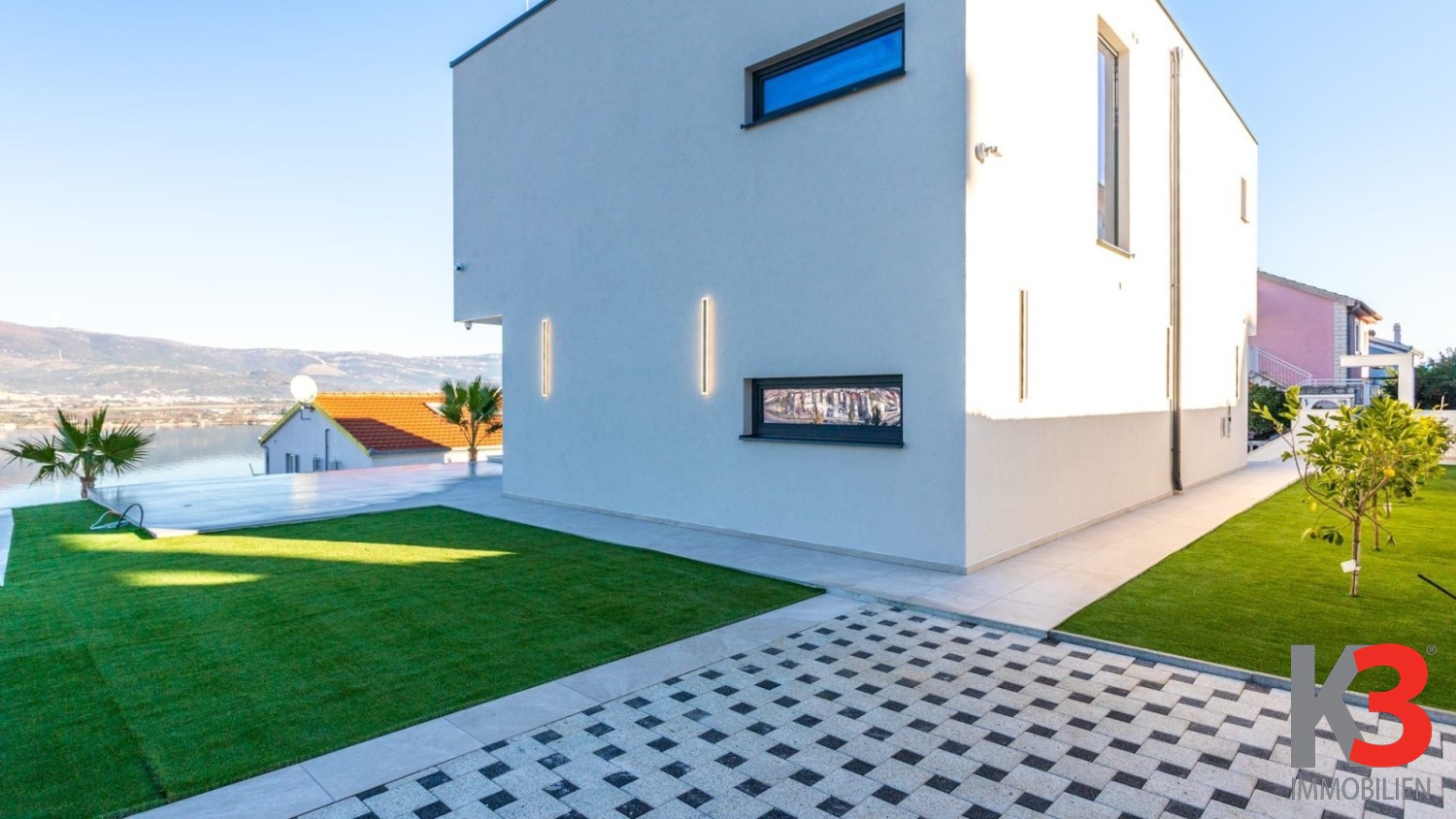 Der Außenbereich der Villa ist vollständig gestaltet und gepflegt und bietet Privatsphäre sowie ein angenehmes Ambiente für den Aufenthalt im Freien. Die Immobilie wird unmöbliert und in der Endphase der Fertigstellung verkauft, sodass zukünftige Eigentümer den Innenraum nach ihrem eigenen Stil und ihren Bedürfnissen gestalten können. Einen besonderen Mehrwert bietet die Nähe zum Meer, das nur 120 Meter entfernt ist, sowie die ausgezeichnete Verkehrsanbindung, da der Flughafen in wenigen Autominuten erreichbar ist. Diese Villa ist die ideale Wahl für ein luxuriöses Familienhaus oder als hochwertige Investition in die touristische Vermietung.