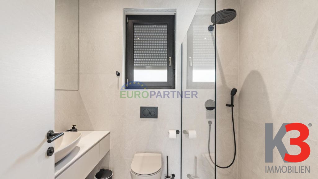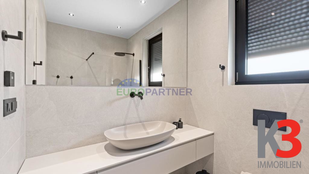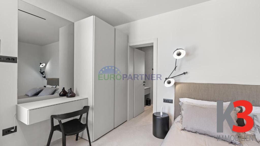 Die Villa verfügt über drei Schlafzimmer, von denen zwei über ein eigenes Bad verfügen. Dann haben wir eine Gästetoilette, einen Technikraum, der von außerhalb der Villa betreten werden kann, und einen Mini-Kleiderschrank.