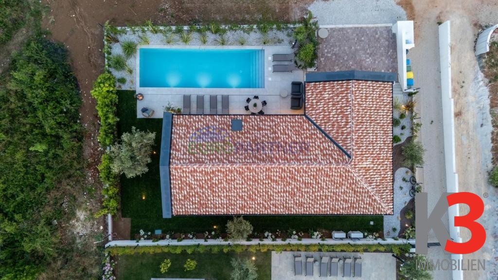 In Tar, nur 3,5 km vom Meer entfernt, befindet sich diese wunderschöne Villa, die eine Kombination aus moderner Architektur, Komfort, Luxus, warmer und angenehmer Atmosphäre und dem Grün der Natur darstellt.