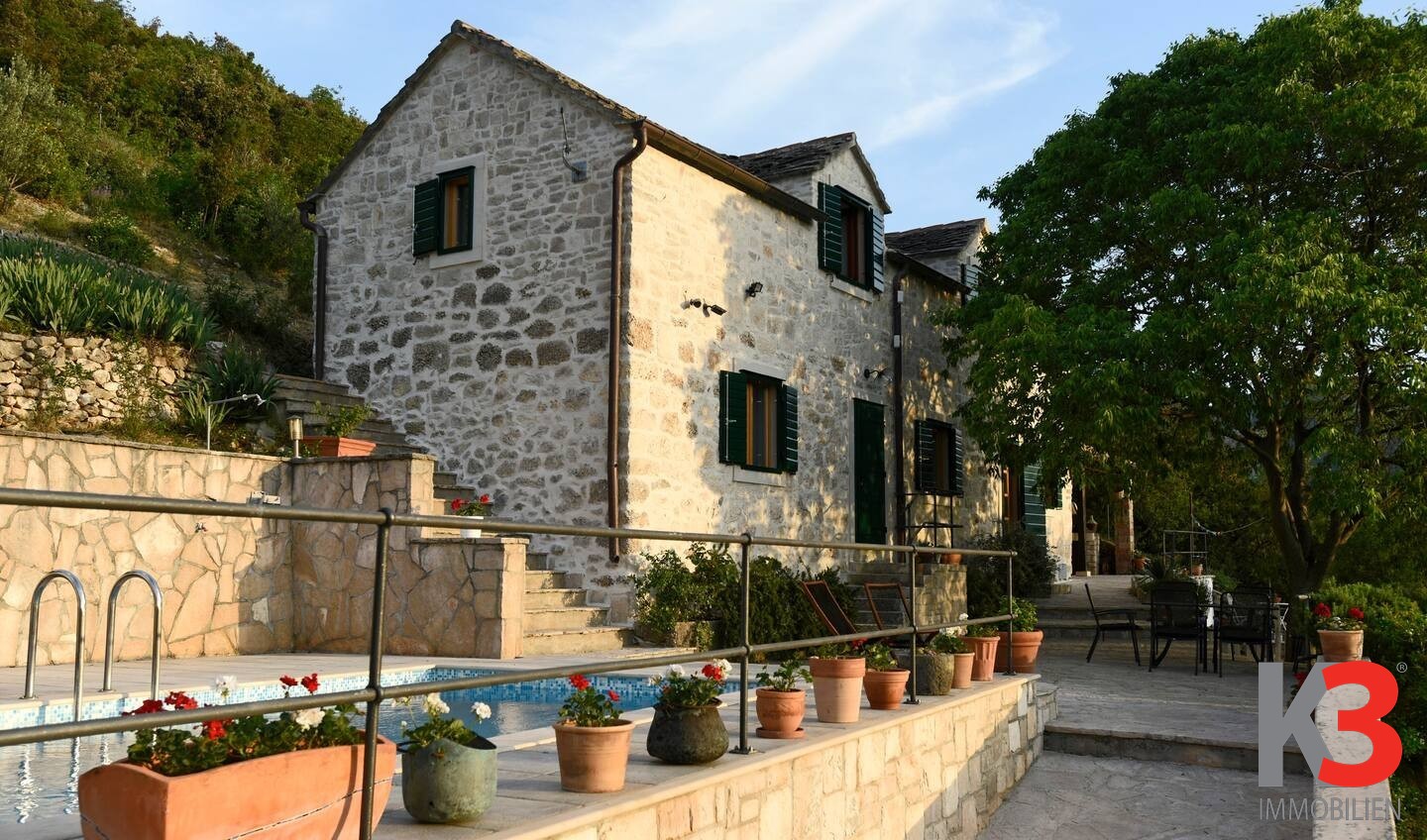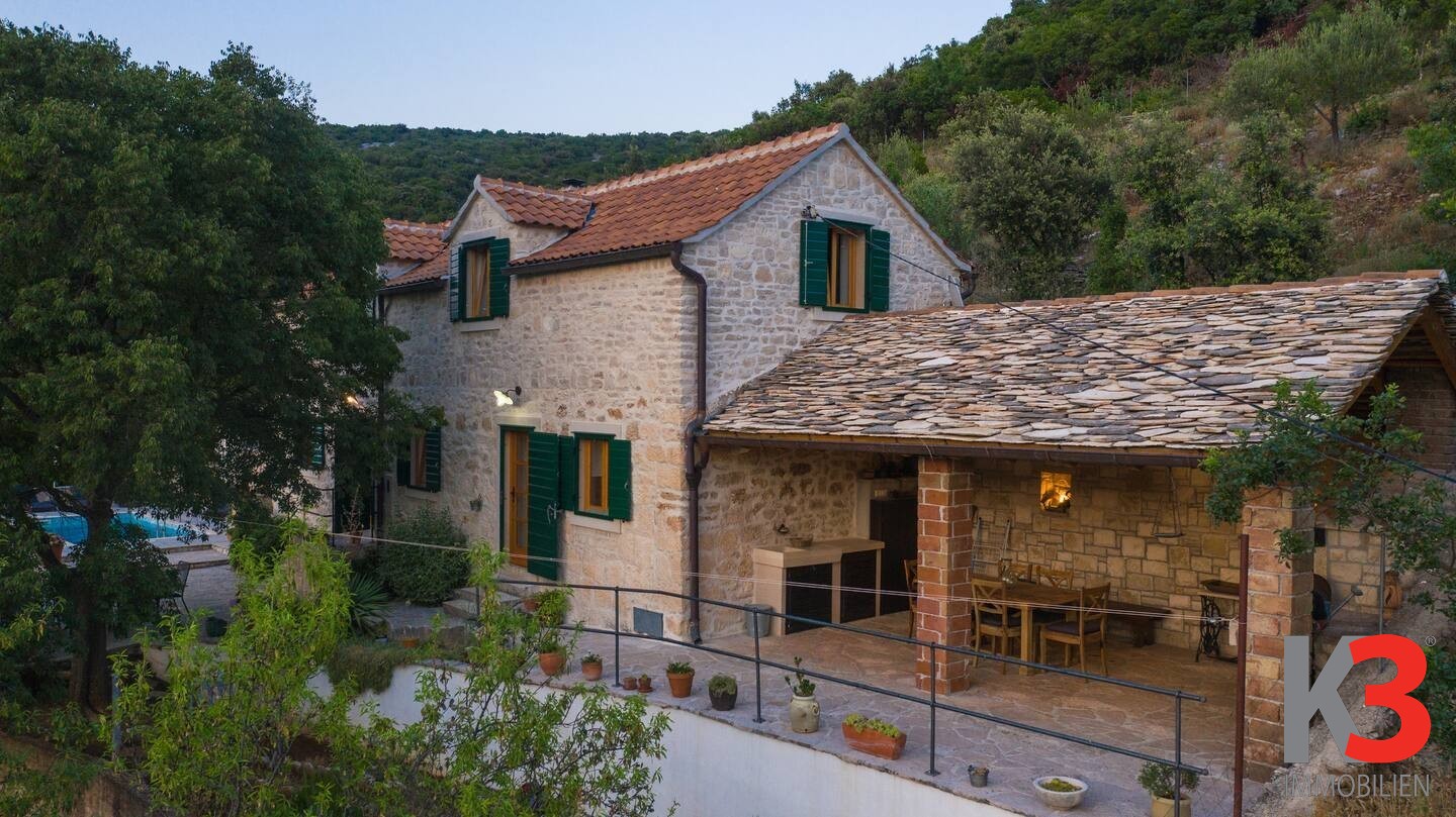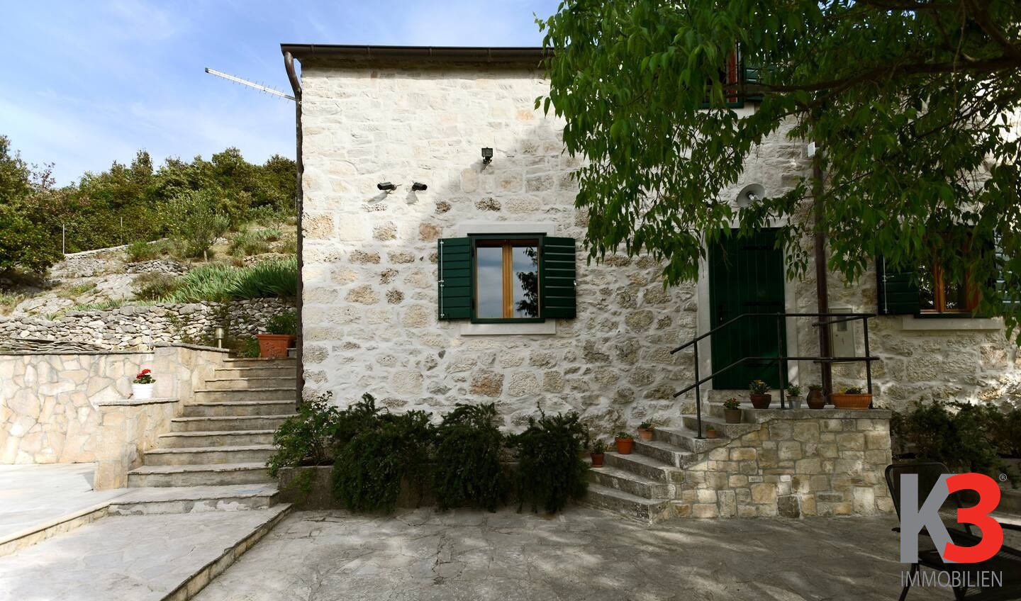 Im ruhigen Ort Dol, auf der Insel Brač, steht ein wunderschönes authentisches Steinhaus zum Verkauf, das historischen Charme mit modernem Komfort verbindet. Das Haus ist über 100 Jahre alt, wurde jedoch 2019 vollständig renoviert, wobei der ursprüngliche dalmatinische Stil erhalten blieb und gleichzeitig alle modernen Annehmlichkeiten für einen komfortablen Aufenthalt integriert wurden. Es befindet sich auf einem Grundstück von 1.950 m², während die Wohnfläche 130 m² beträgt. Vom Grundstück und Haus bietet sich ein schöner Blick auf das Meer, und die Küste ist nur 2,8 Kilometer entfernt.