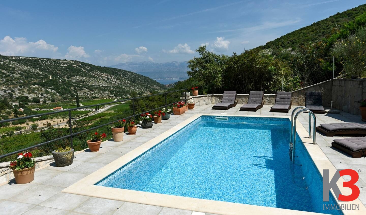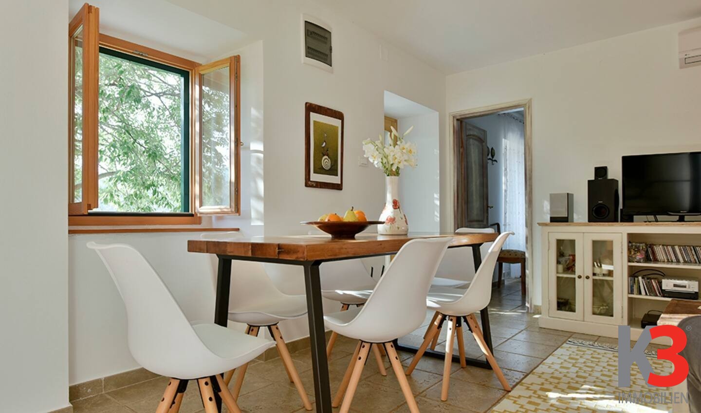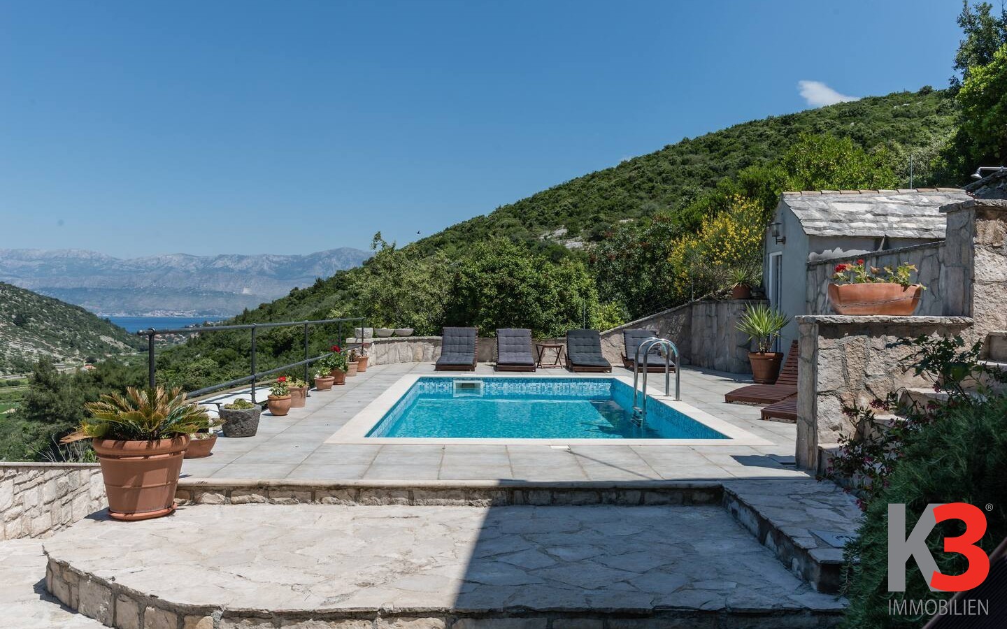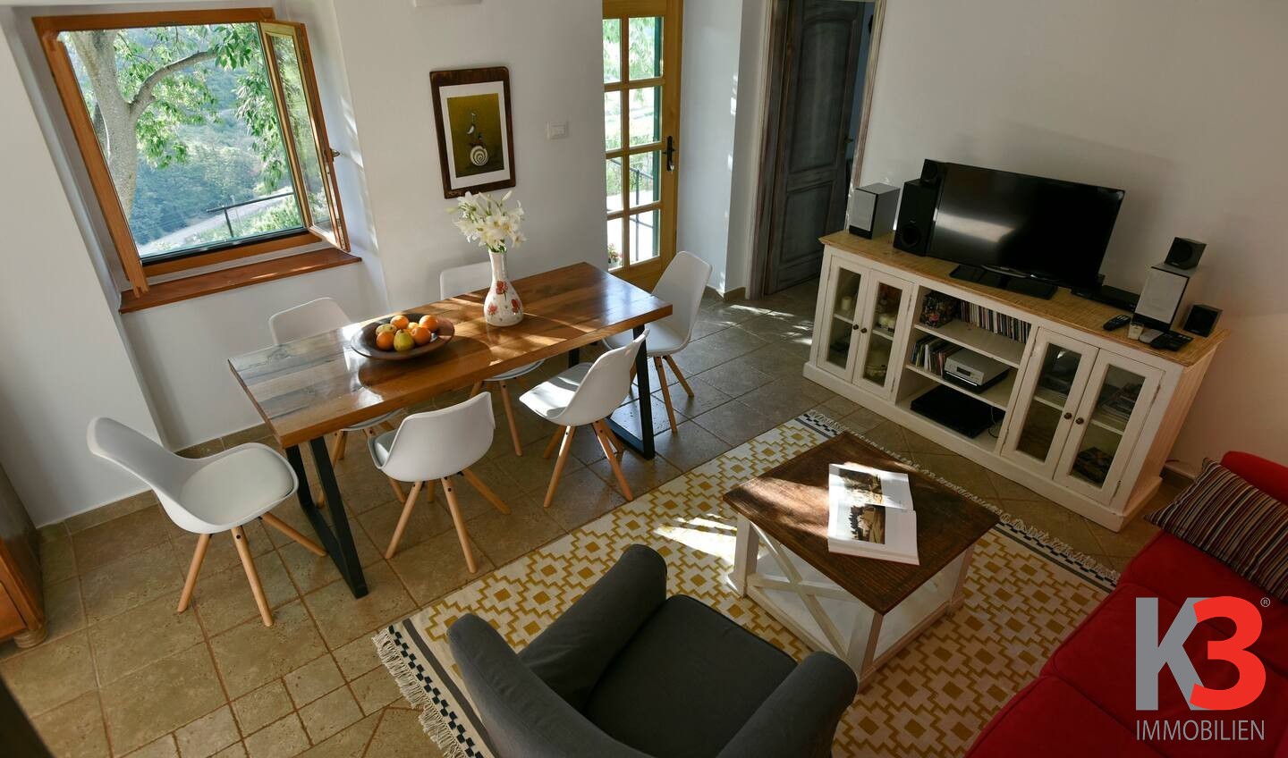 Das Innere besteht aus drei Schlafzimmern und zwei elegant gestalteten Badezimmern, und das gesamte Haus ist klimatisiert, um das ganze Jahr über Komfort zu gewährleisten. Die Renovierung wurde sorgfältig durchgeführt, mit besonderem Augenmerk auf die Erhaltung authentischer Steinelemente und die Schaffung einer Atmosphäre, die an traditionelle dalmatinische Häuser erinnert, jedoch in einem modernen Rahmen. Der Außenbereich verfügt über einen Pool von 18 m², ideal zur sommerlichen Erfrischung und Entspannung in völliger Privatsphäre.