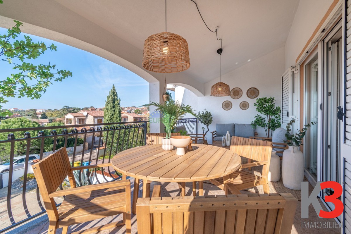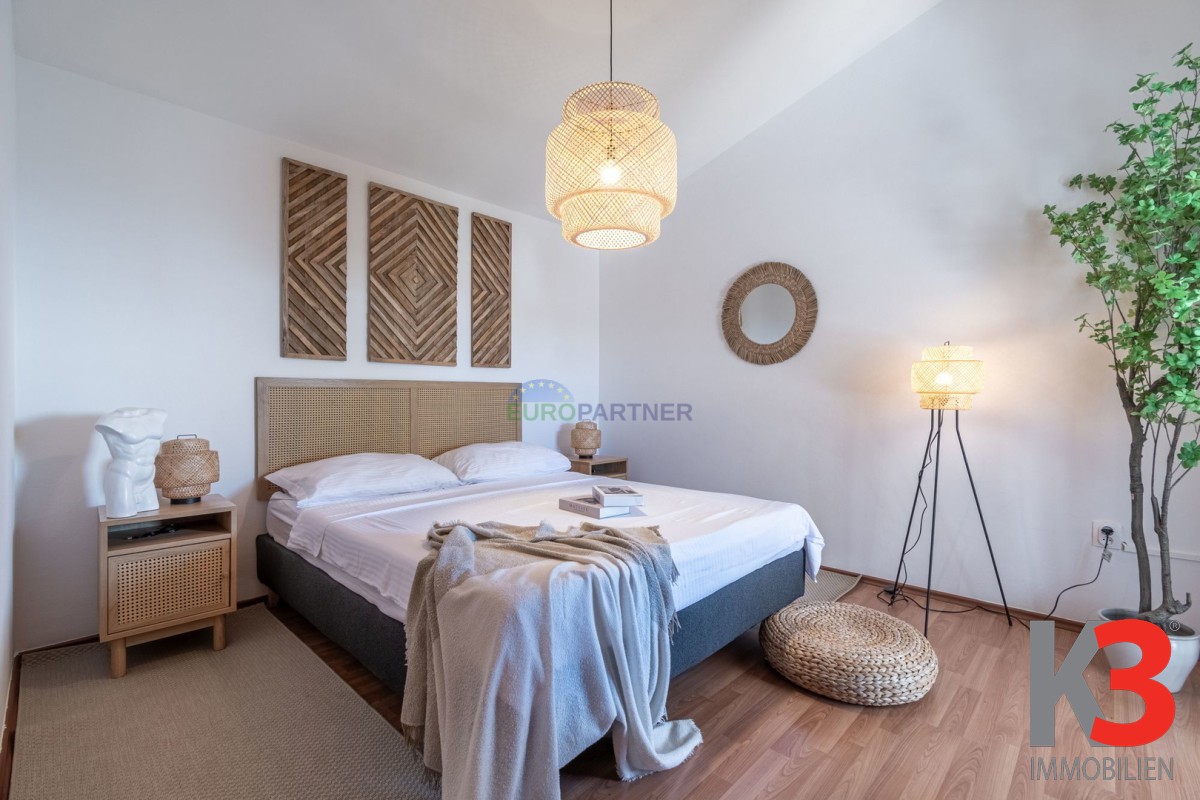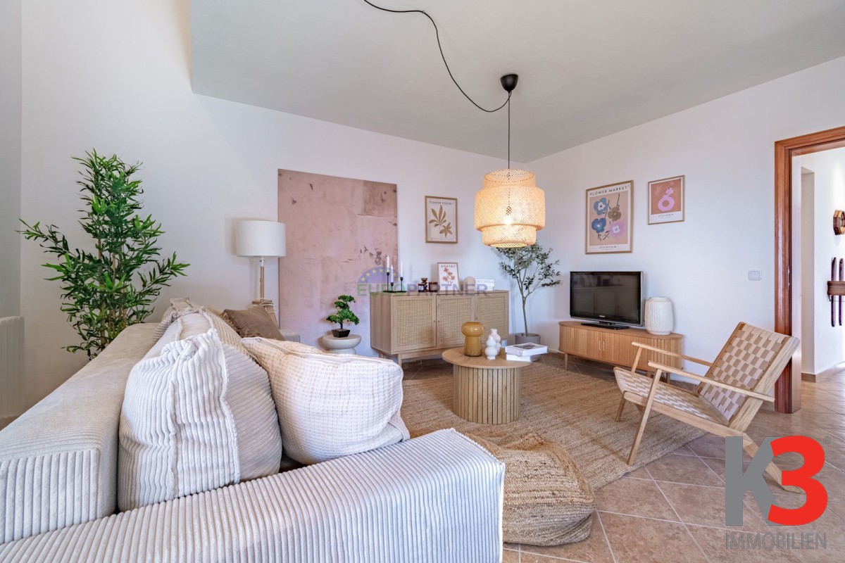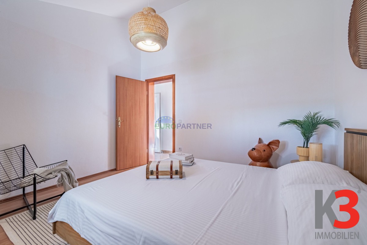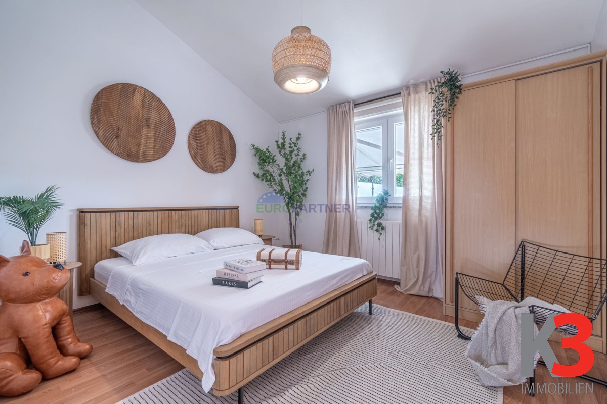 Über eine Innentreppe gelangt man in den ersten Stock, wo sich zwei weitere Schlafzimmer und ein Badezimmer befinden. Eines der Schlafzimmer hat Zugang zu einer perfekt dekorierten Loggia, einem Raum, der tagsüber zum Entspannen mit einem guten Buch oder einem Lieblingshobby gedacht ist.