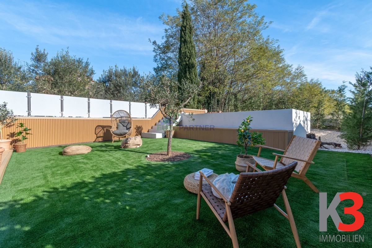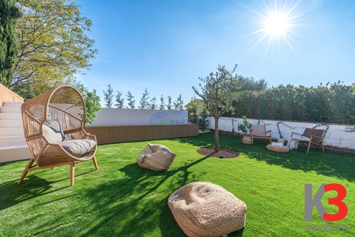 Aber natürlich haben wir nicht vergessen, mit dieser Beschreibung auch das Äußere des Hauses zu vermitteln. Wenn Sie nach draußen gehen, werden Sie sicherlich von dem sorgfältig gepflegten, mit mediterranen Pflanzen geschmückten Rasen begeistert sein, der sich neben der großen Außenterrasse im Erdgeschoss befindet, während in der Fortsetzung dieses Teils des Hofes für diejenigen, die gerne in der Sonne entspannen, ein Swimmingpool und eine Liegewiese zur Verfügung stehen.