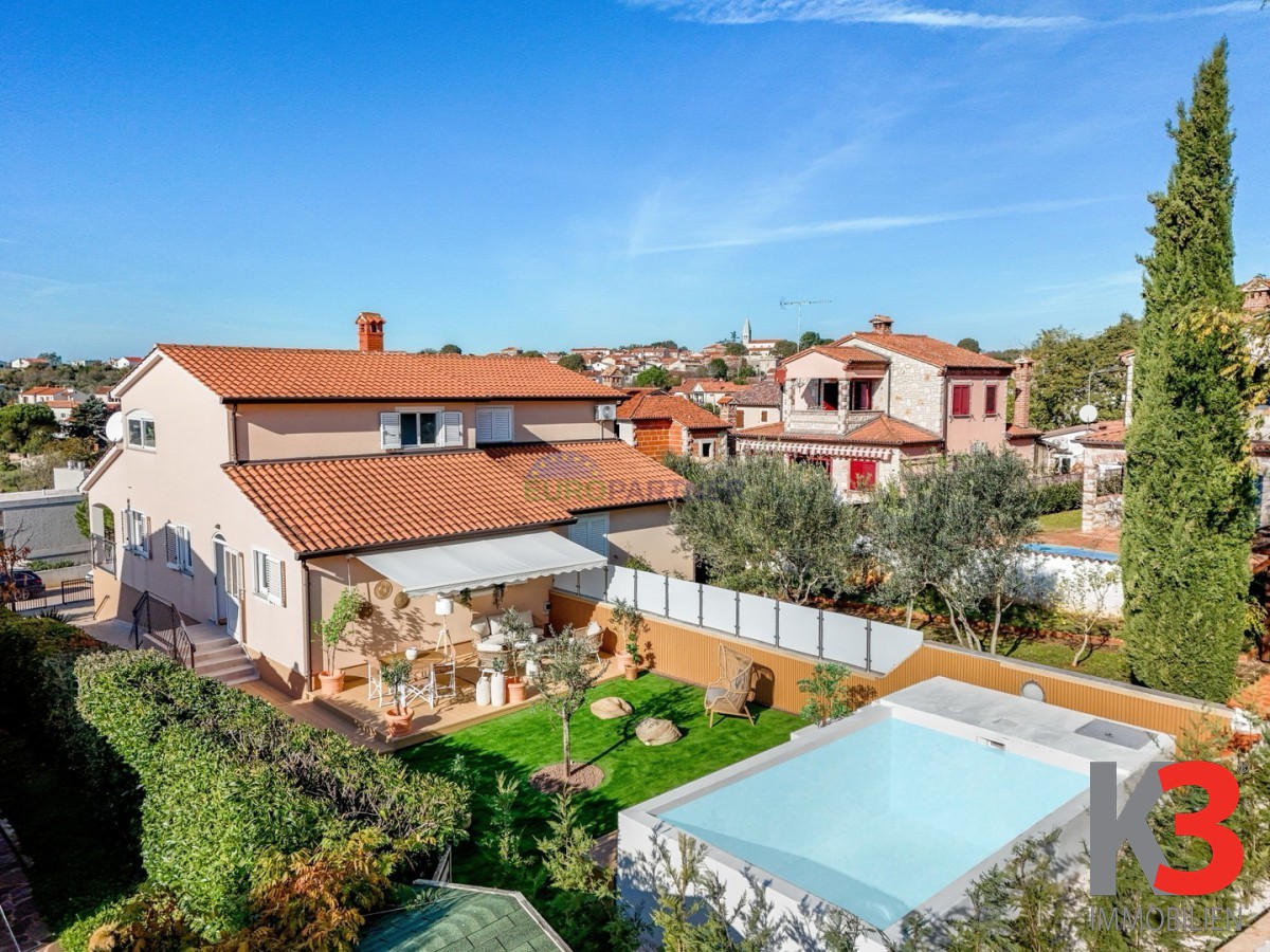 Dieses schöne Doppelhaus mit Swimmingpool liegt 500 m vom Zentrum der begehrtesten Gemeinde in der Nähe der Stadt Poreč entfernt.