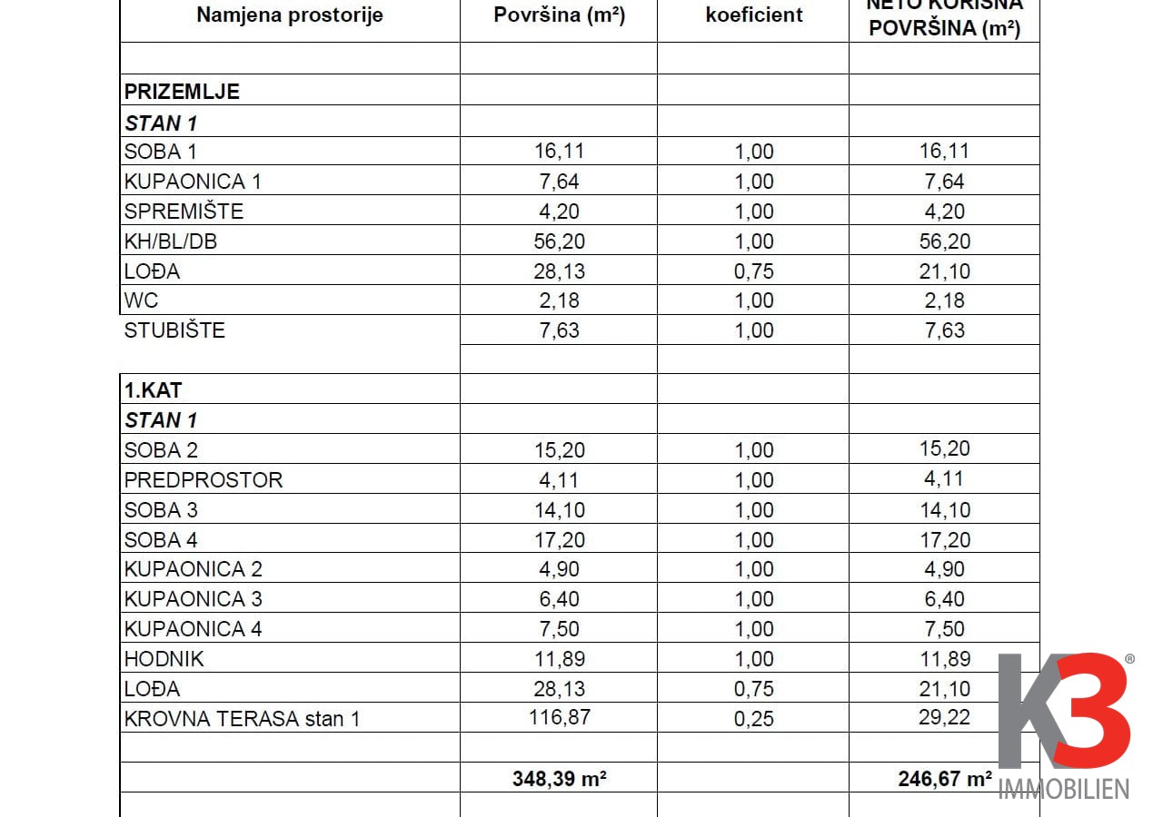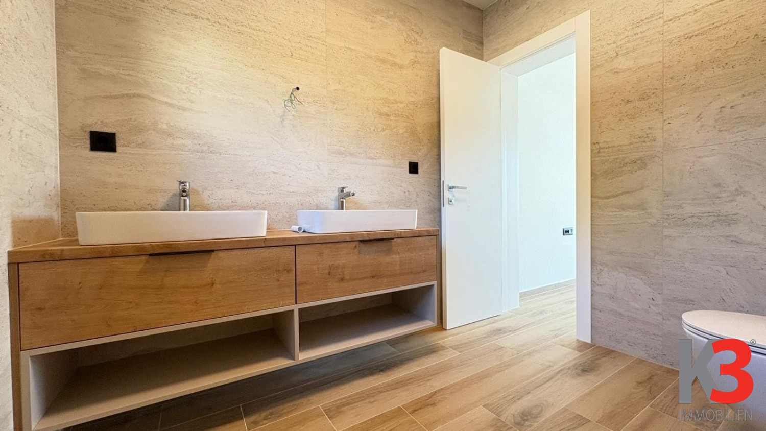 Die Villa befindet sich auf einem großzügigen Grundstück und verfügt über insgesamt vier Schlafzimmer, jedes mit eigenem Badezimmer, was maximale Privatsphäre und Komfort garantiert. Zusätzlich gibt es ein Gäste-WC, einen geräumigen Wohnbereich mit Küche und Esszimmer, und das gesamte Objekt ist mit Fußbodenheizung ausgestattet, die das ganze Jahr über für eine angenehme Atmosphäre sorgt. Moderne Materialien und hochwertige Geräte, die beim Bau und bei der Ausstattung verwendet wurden, unterstreichen den luxuriösen Charakter dieser Immobilie.