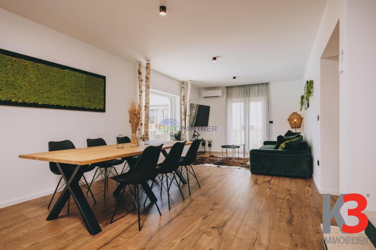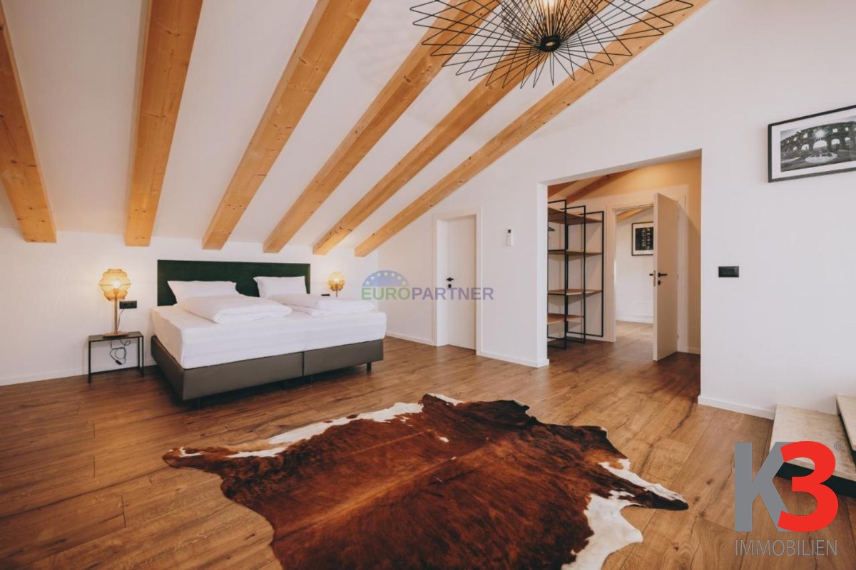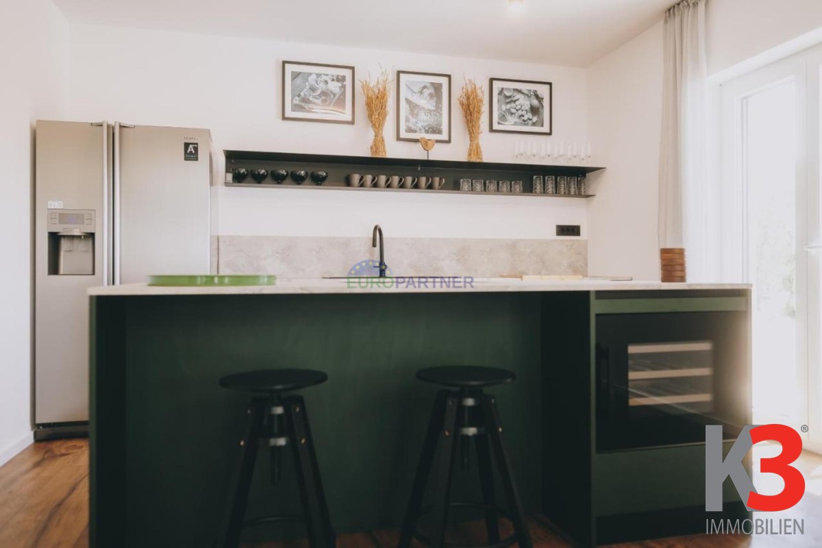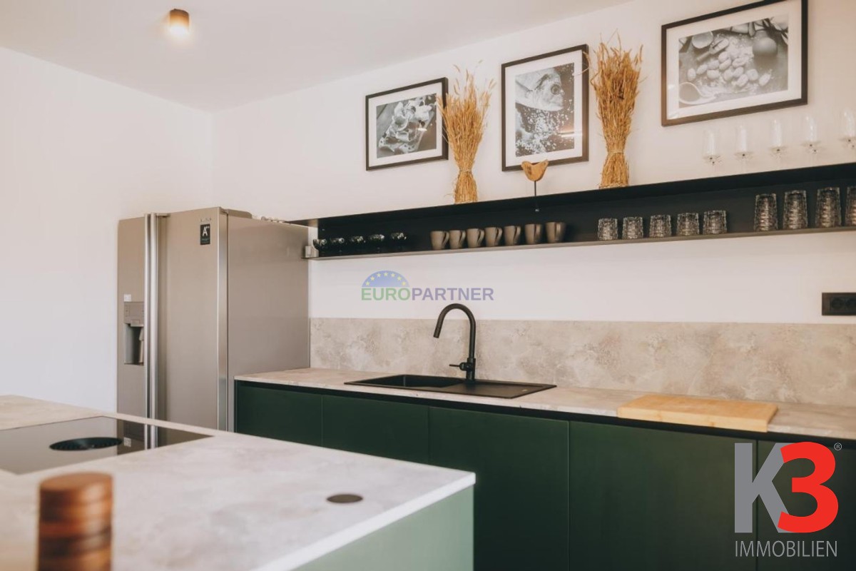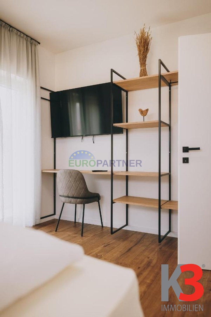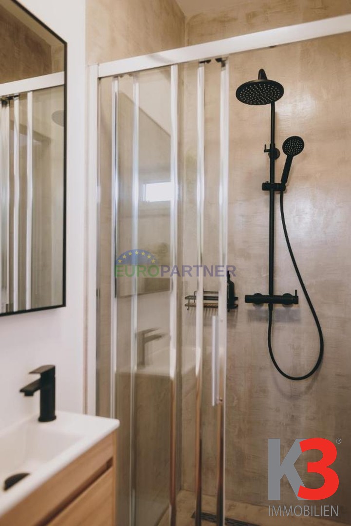 Im oberen Erdgeschoss befinden sich zwei Schlafzimmer mit eigenen Badezimmern, ein Badezimmer und ein Wohnzimmer mit Küche und Esszimmer in einer Open-Space-Version. Im Esszimmer führt eine Treppe in den ersten Stock, wo sich eine Bibliothek, ein großes Schlafzimmer mit Bad und eine Waschküche befinden. Das Zimmer verfügt über eine große Balkonwand mit Zugang zur Terrasse. Die Terrasse bietet einen Blick auf den Swimmingpool und einen wunderschönen Olivenhain.