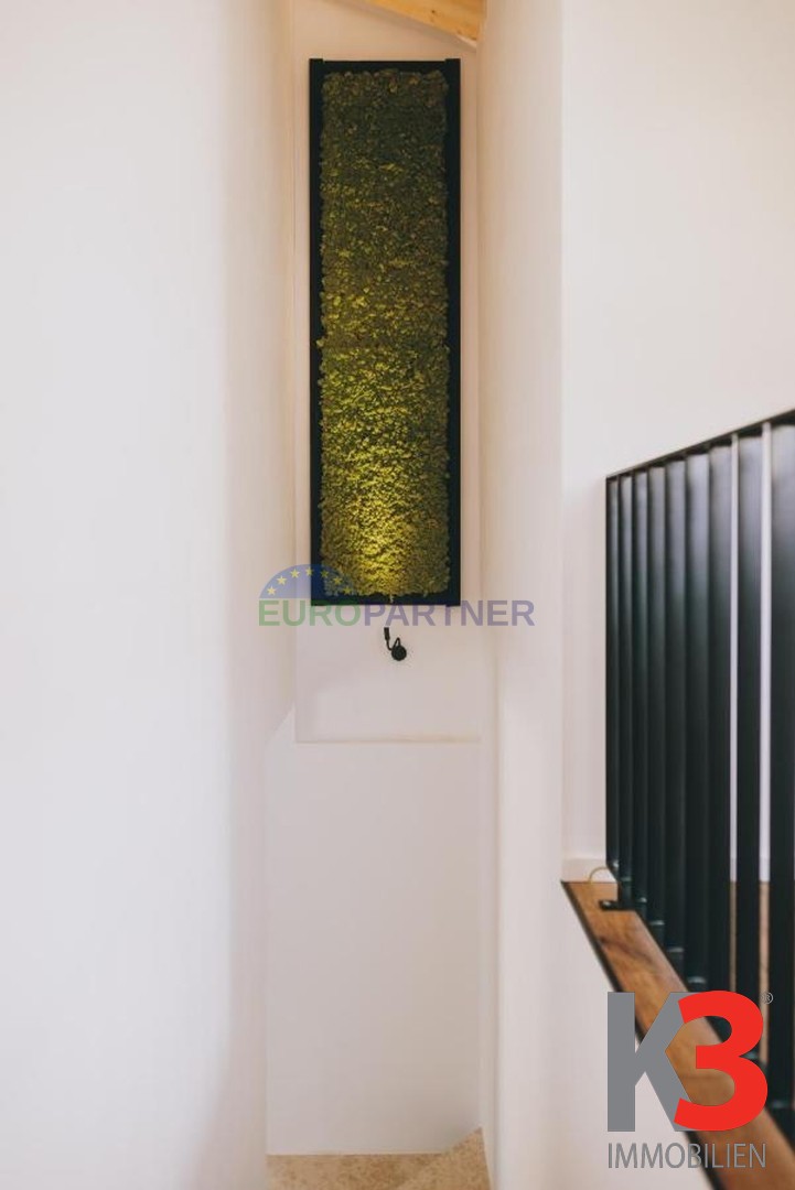 Das Haus befindet sich in der Fertigstellungsphase. Es ist so konzipiert, dass es absoluten Komfort bietet. Die Wände sind in Weißtönen gehalten, während die Möbel sehr modern in Pastelltönen gehalten sind und so eine angenehme und warme Atmosphäre geschaffen wurde. Der Eigentümer wollte der Umgebung Elemente der Natur wie Moos und Birken hinzufügen, damit das Haus Leben ausstrahlt. Im Keller des Hauses befinden sich eine Sauna mit Bad und ein Fitnessraum, sowie Geräte für den Pool und ein Heizkessel mit großem Abstellraum für Liegestühle.