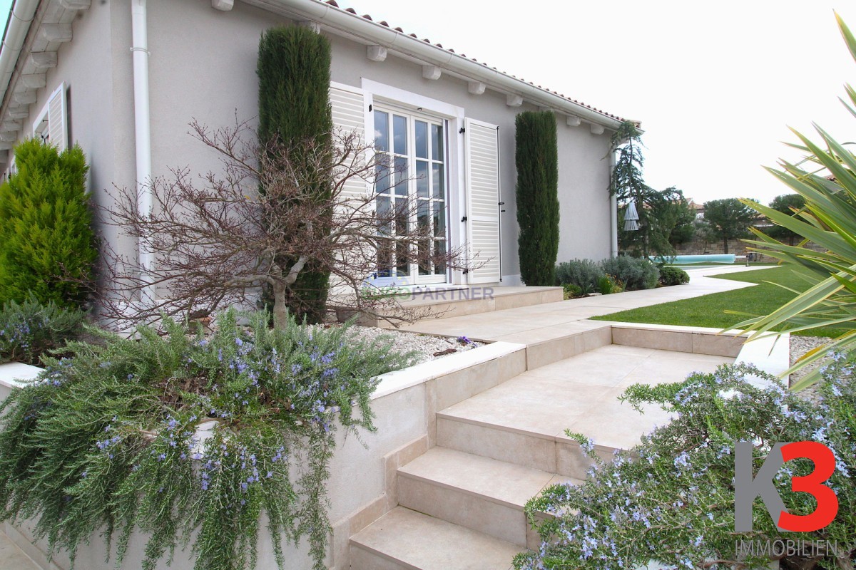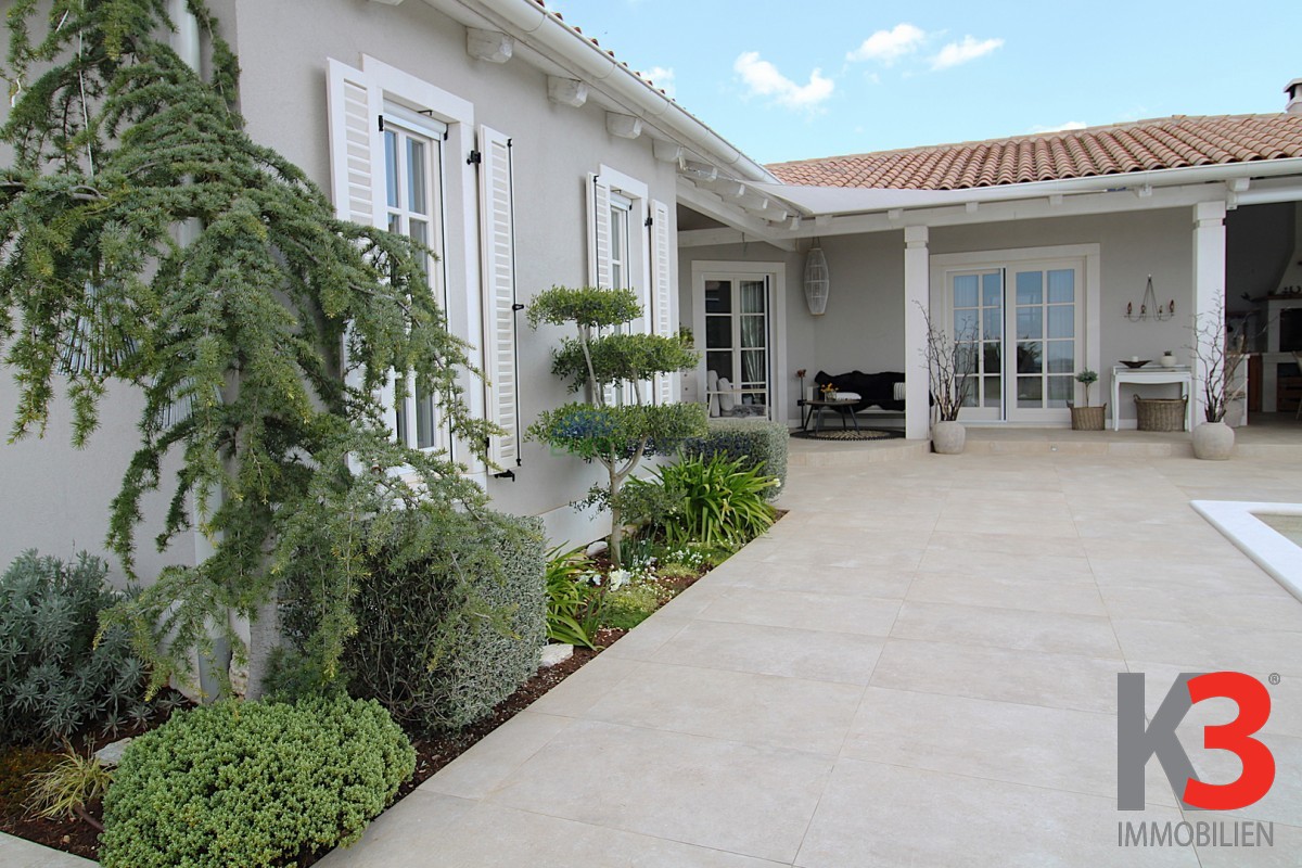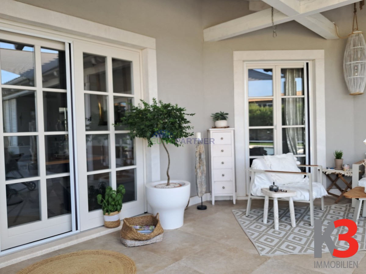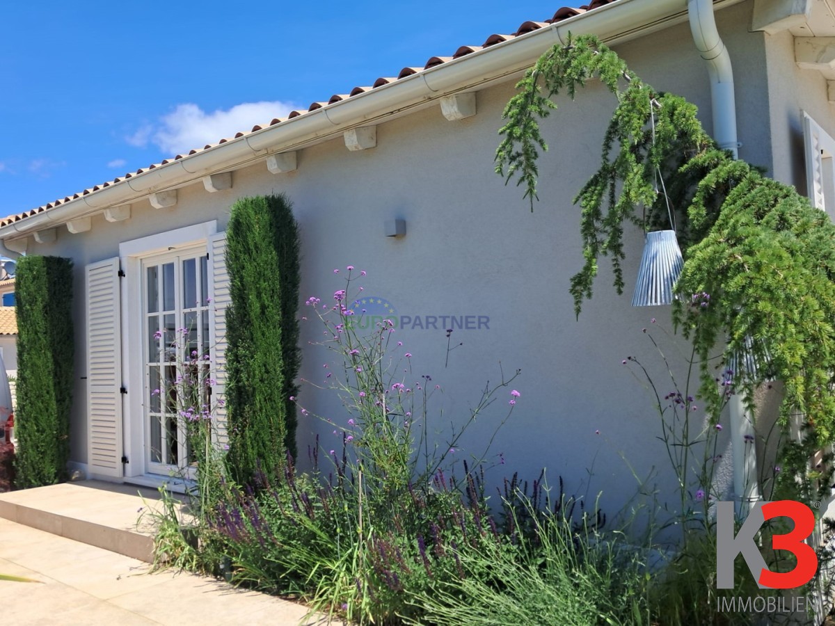 Wir präsentieren Ihnen ein freistehendes Haus, das Qualität, Funktionalität und eine erstklassige Lage mit unverbaubarem Meerblick vereint. Dieses wunderschöne, ebenerdige Haus im mediterranen Stil befindet sich auf einem 900 Quadratmeter großen Grundstück.