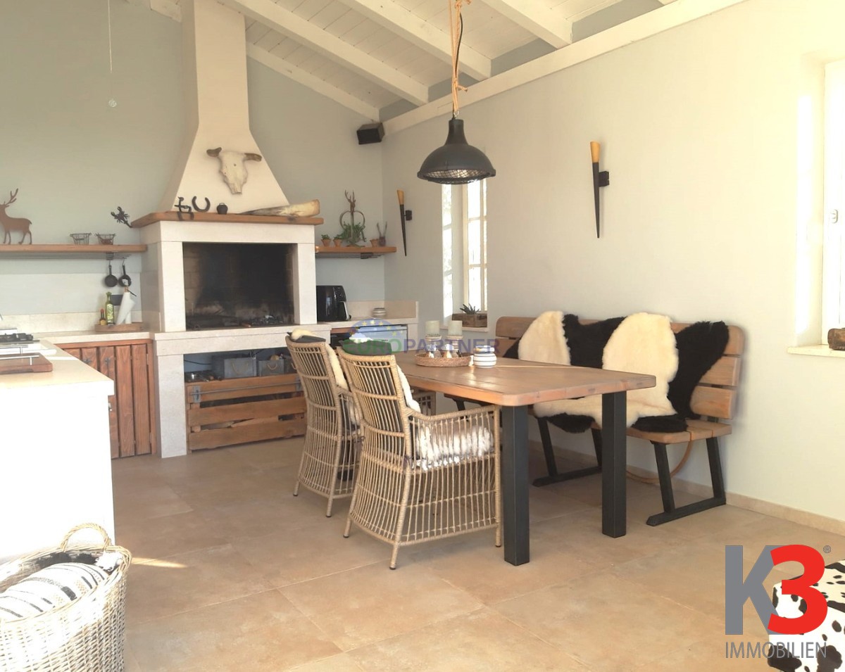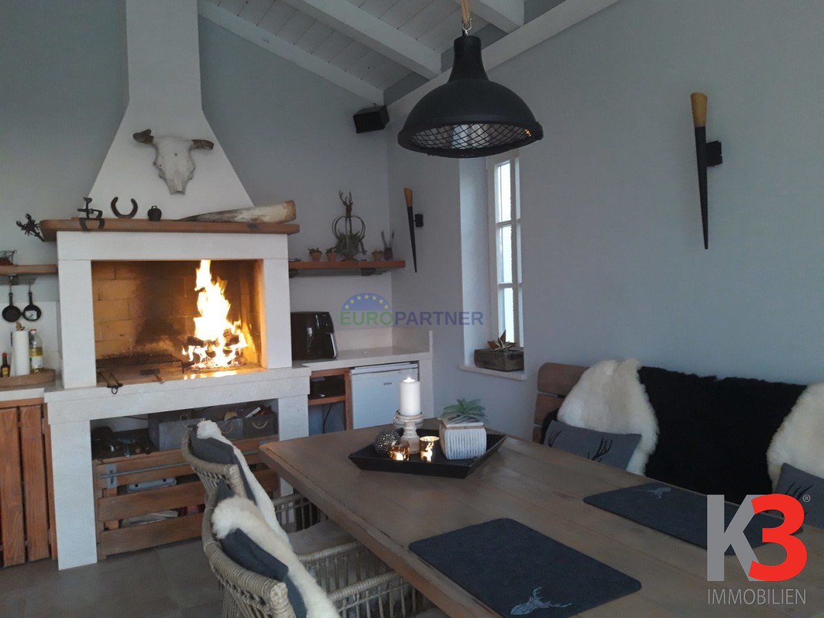 Eine voll ausgestattete Sommerküche mit Kamin befindet sich direkt neben dem Haus und kann ganzjährig genutzt werden.
