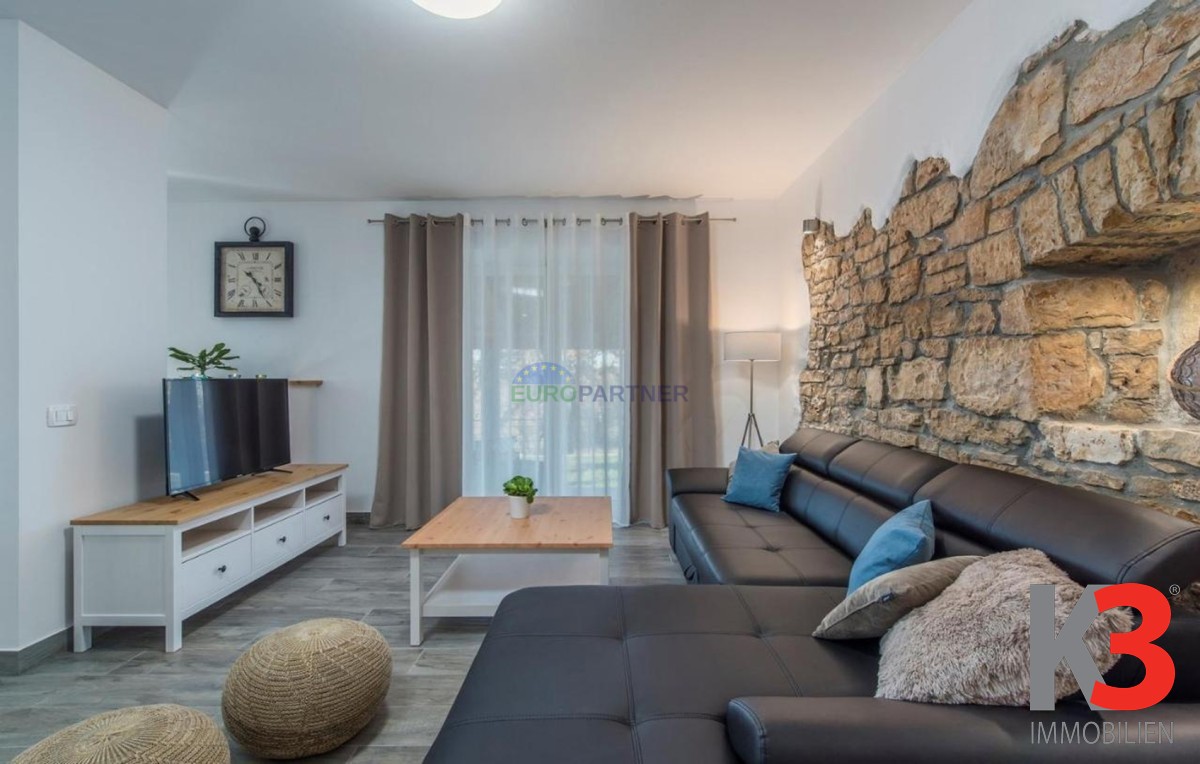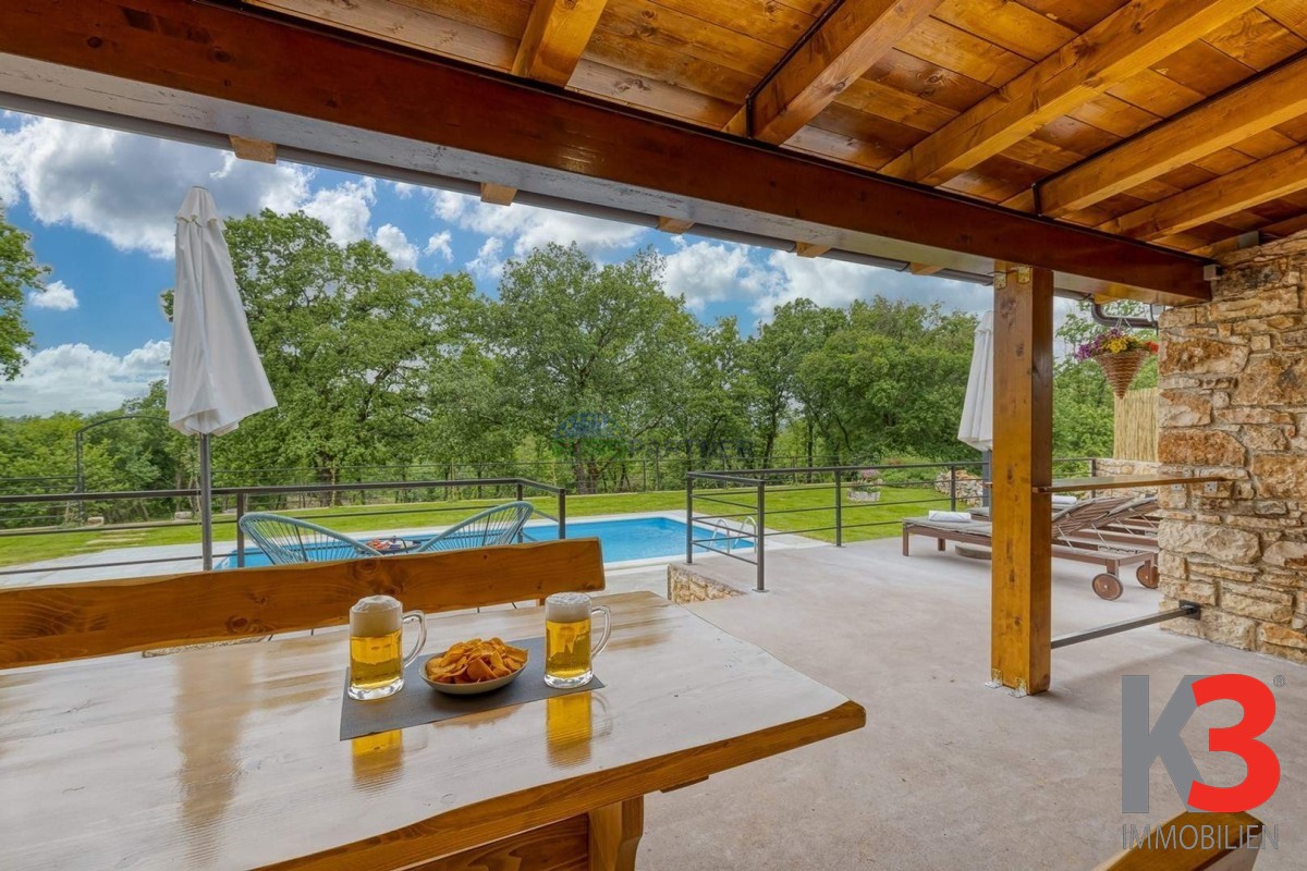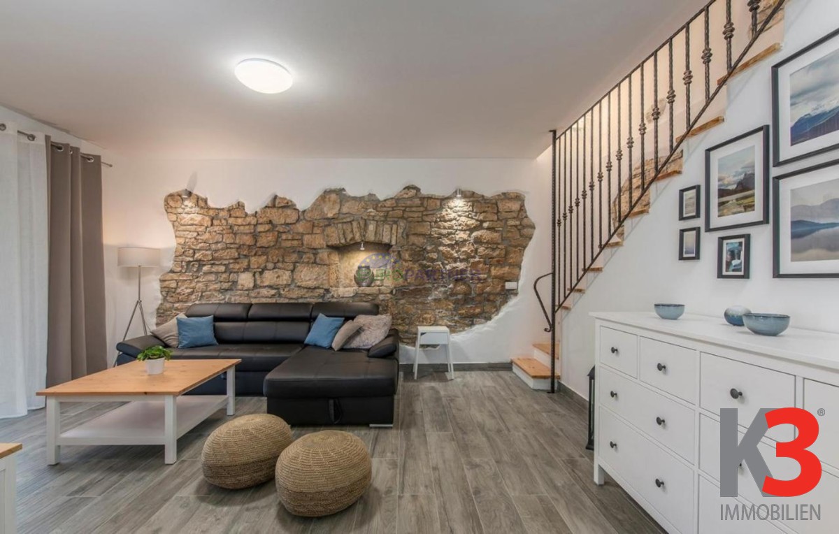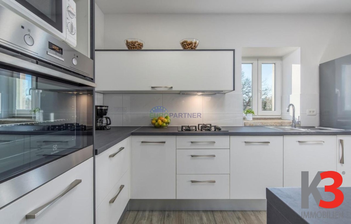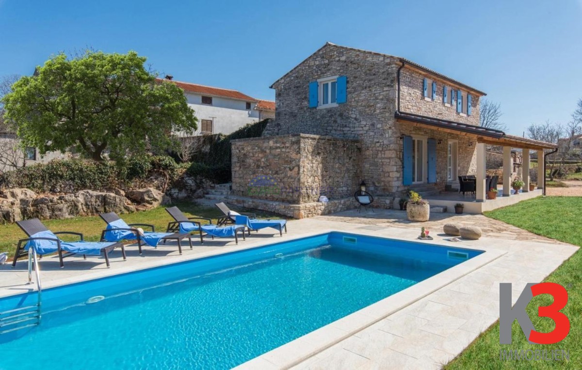 Dieses schöne Steinhaus ist sicherlich dasjenige, das neben der Erholung auch die Batterien jedes Besuchers wieder auflädt, den Glanz, das Lächeln und das Wissen zurückbringt, wie kleine Dinge uns glücklich machen. Sein rustikales Äußeres, das den traditionellen Bau der Steinhäuser in Istrien zelebriert, wird Sie auf den ersten Blick überzeugen, ebenso wie die Pracht des Grüns, die den sorgfältig angelegten Garten schafft. Jedes Detail der Umgebung und des Innenraums des Hauses ist mit großer Sorgfalt und Sorgfalt für diese bezaubernden Momente dekoriert. Sie machen einen solchen Raum äußerst warm und attraktiv.