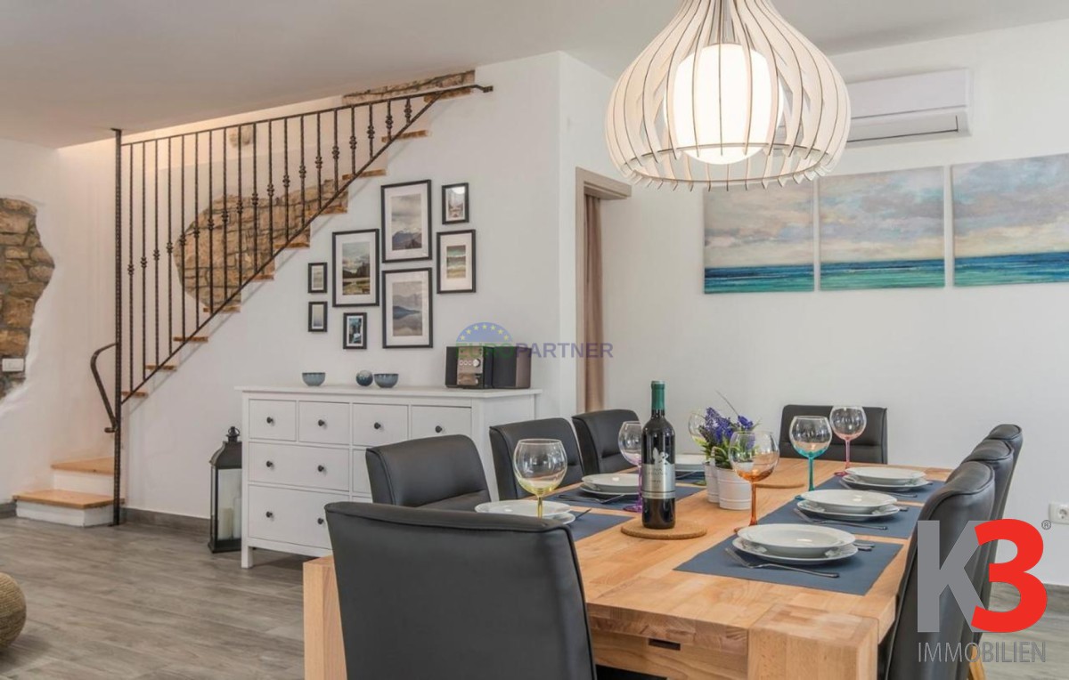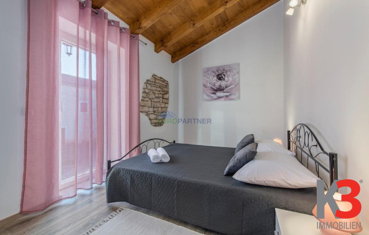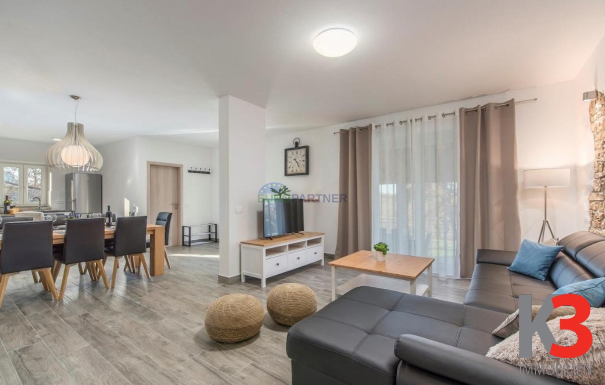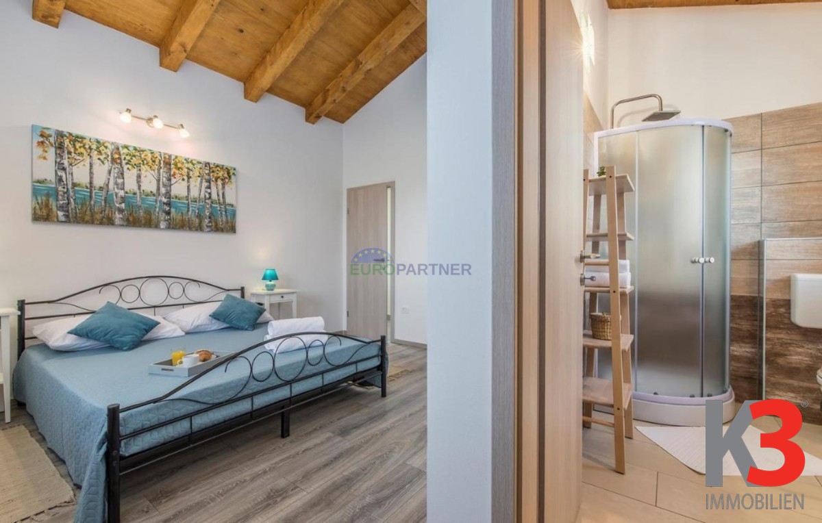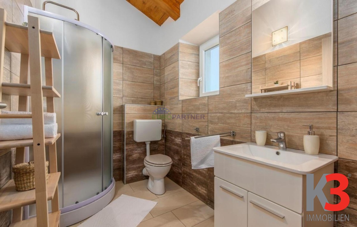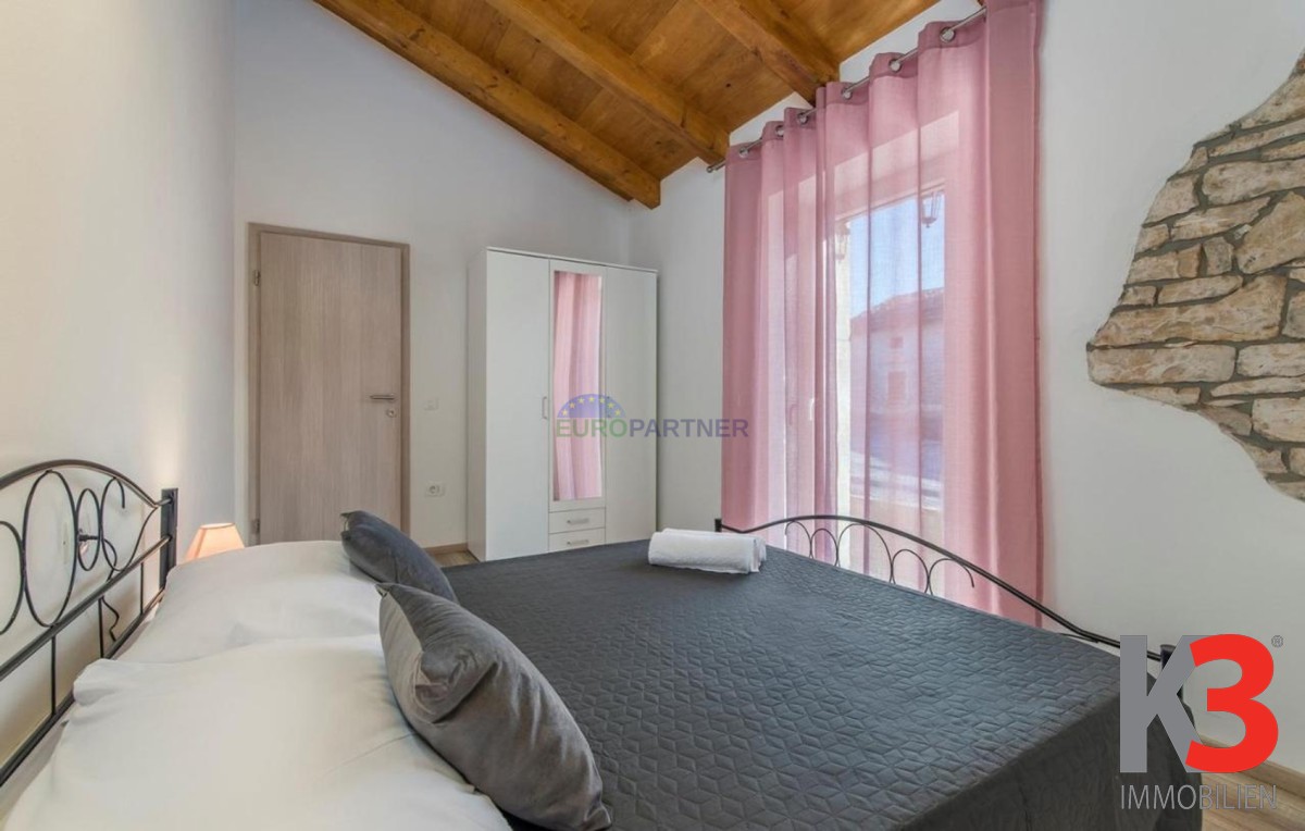 Dieses schöne Steinhaus ist sicherlich dasjenige, das neben der Erholung auch die Batterien jedes Besuchers wieder auflädt, den Glanz, das Lächeln und das Wissen zurückbringt, wie kleine Dinge uns glücklich machen. Sein rustikales Äußeres, das den traditionellen Bau der Steinhäuser in Istrien zelebriert, wird Sie auf den ersten Blick überzeugen, ebenso wie die Pracht des Grüns, die den sorgfältig angelegten Garten schafft. Jedes Detail der Umgebung und des Innenraums des Hauses ist mit großer Sorgfalt und Sorgfalt für diese bezaubernden Momente dekoriert. Sie machen einen solchen Raum äußerst warm und attraktiv.