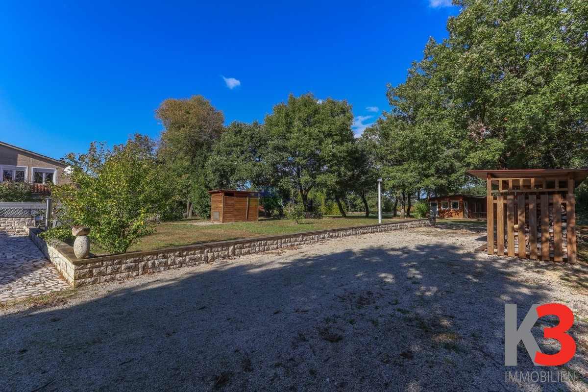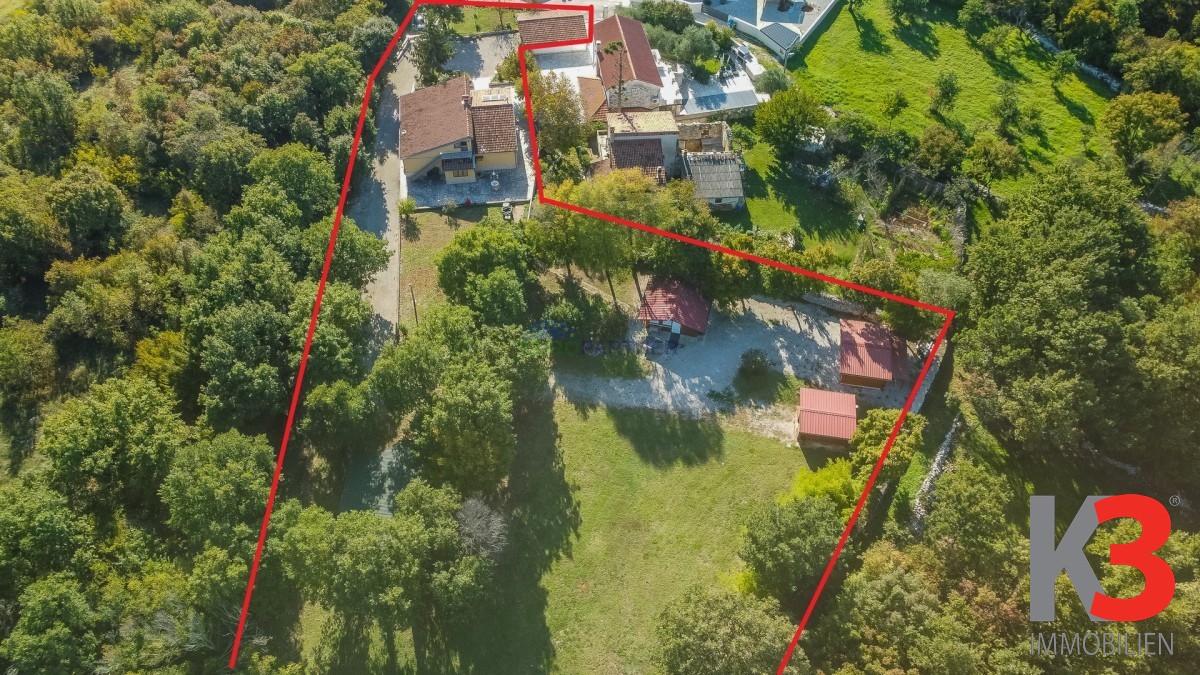 In äußerst ruhiger Lage, am Rande eines kleinen Dorfes, 3,5 km von der historischen istrischen Stadt Sv. Lovreč entfernt, befindet sich das Haus aus unserem Angebot auf einem 6.600 qm großen Grundstück.