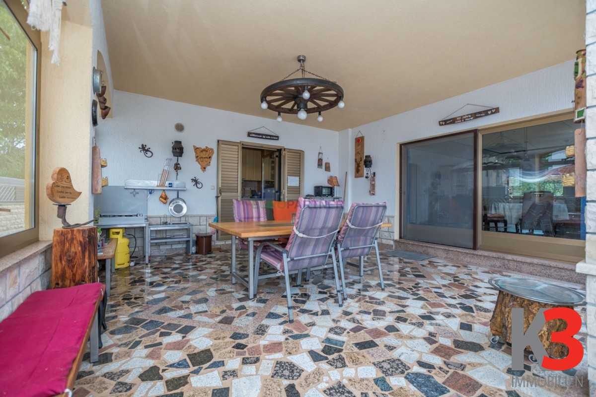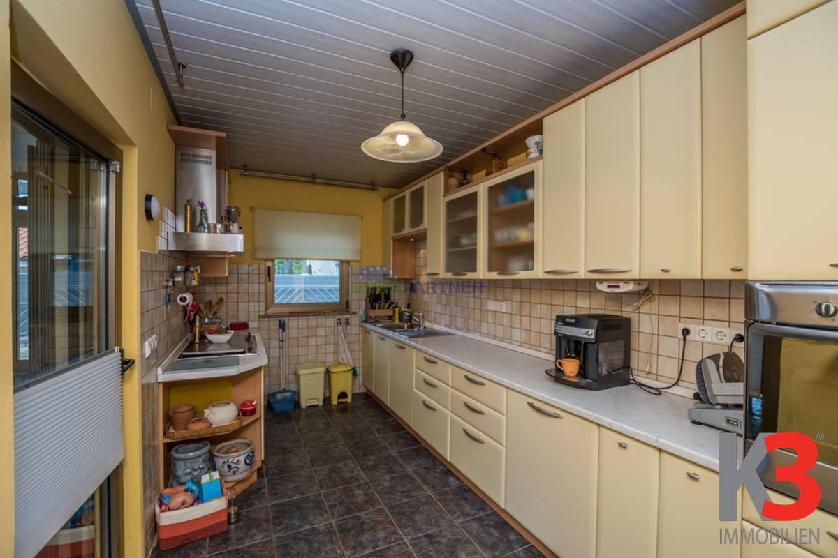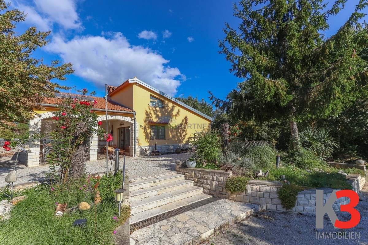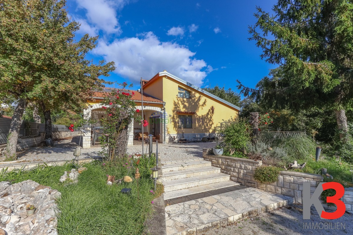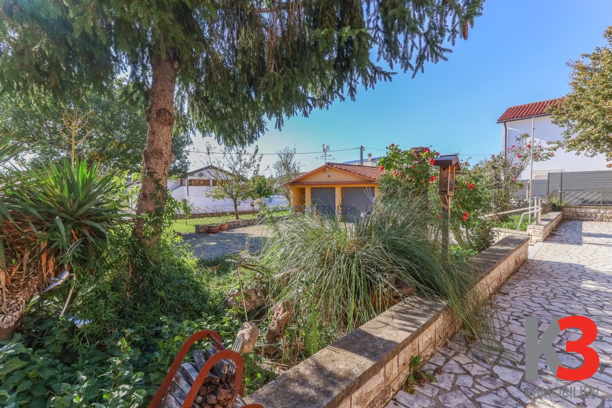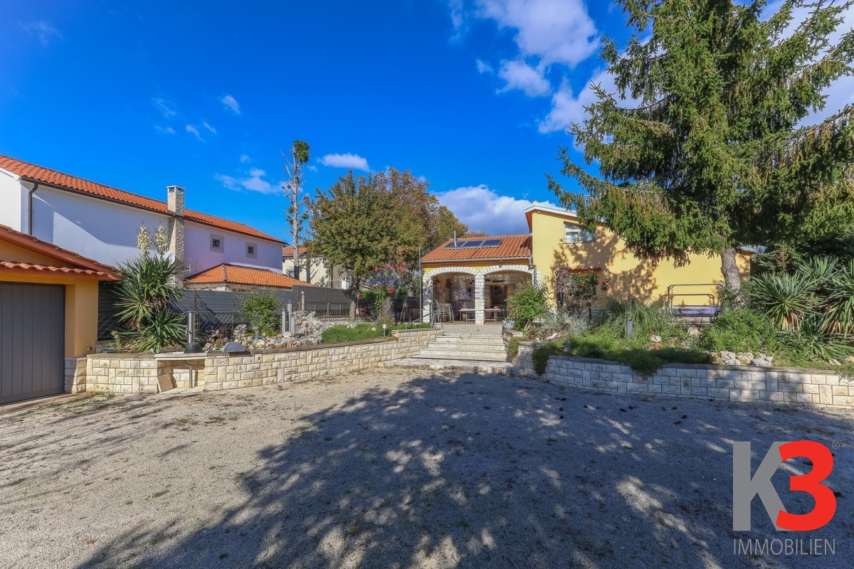 Das Haus ist von einem großen Gartenbereich umgeben, in dem sich zwei Nebengebäude befinden und als Gästehaus dienen.