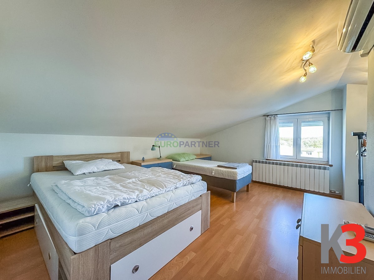 Die Wohnung verfügt über drei Schlafzimmer sowie ein weiteres, kleineres Schlafzimmer, das derzeit als Lager genutzt wird, was sie zur idealen Wahl für größere Familien oder diejenigen macht, die zusätzlichen Platz schätzen. Die Ausrichtung nach Süden und Westen sorgt für reichlich Tageslicht und bietet spektakuläre Meerblicke. Weitere Details beinhalten Klimaanlage und eine ruhige Lage, die zum gesamten Komfort und zur Lebensqualität in diesem Zuhause beiträgt.