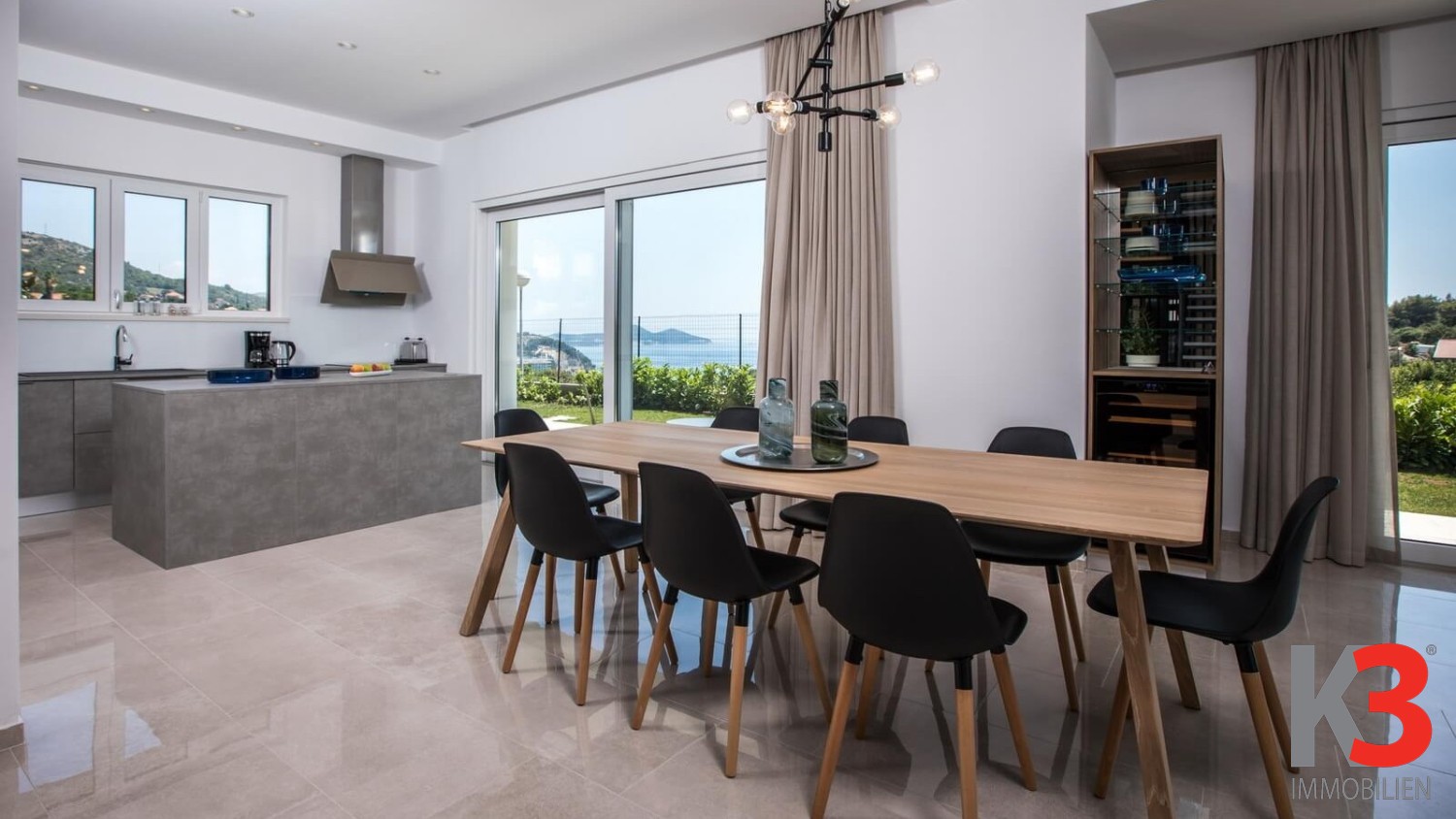 Zum Verkauf steht ein luxuriöses Haus mit schönem Panoramablick auf das Meer im charmanten Ort Orašac, in der Nähe von Dubrovnik. Das Haus wurde 2017 erbaut, hat eine Wohnfläche von 304 m² und erstreckt sich über zwei Etagen. Es befindet sich auf einem 1000 m² großen Grundstück in erhöhter Lage, die Ruhe und einen herrlichen Meerblick bietet. Vor dem Haus befindet sich ein Außenpool, und das Anwesen verfügt über eine Garage sowie ausreichend Parkplätze. Im Erdgeschoss gibt es ein geräumiges Wohnzimmer und eine voll ausgestattete Küche, die auf eine Außenterrasse mit Pool führt. Ein Teil der Terrasse ist überdacht und bietet einen großen Esstisch, während rund um den Pool Liegestühle zum Sonnenbaden stehen. Das Haus verfügt über 4 Schlafzimmer und 4 Badezimmer und wird derzeit als Ferienhaus vermietet, was es zu einer guten Investitionsmöglichkeit im Tourismus macht.
