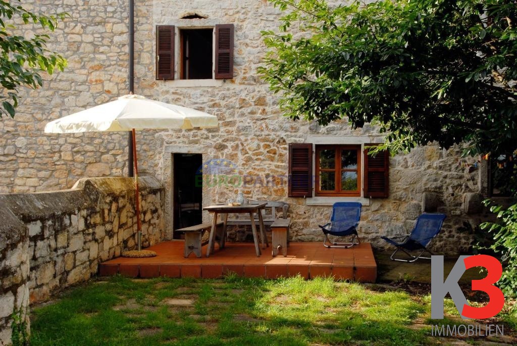 In einem ruhigen Dorf in der Nähe von Poreč steht ein charmantes Reihenhaus aus Stein, das im gleichen Stil wie die Nachbarhäuser eingerichtet ist und so das harmonische Erscheinungsbild der gesamten Reihe bewahrt. Das Haus liegt auf einem 520 m2 großen Landschaftsgrundstück mit Gärten auf der Vorder- und Rückseite.
