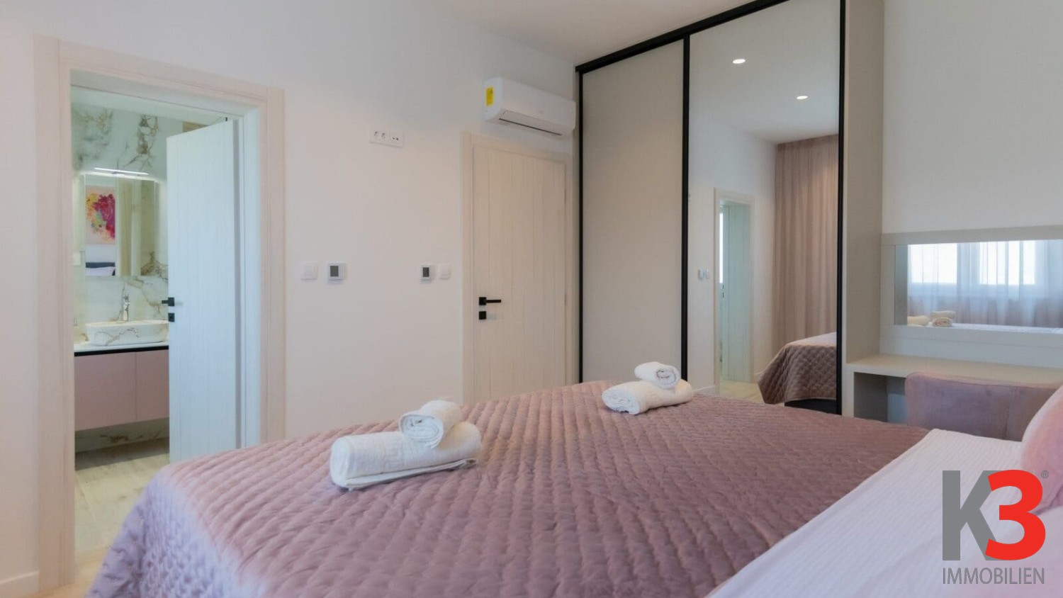 Alle Räume sind mit Klimaanlagen ausgestattet, die Türen sind einbruchsicher, und die Villa verfügt über eine Fußbodenheizung sowie ein Wärmepumpensystem.