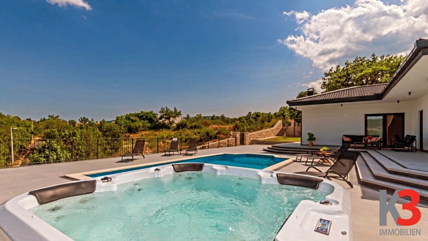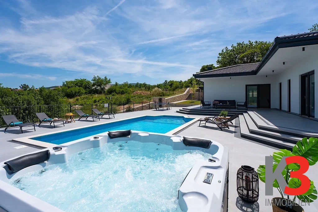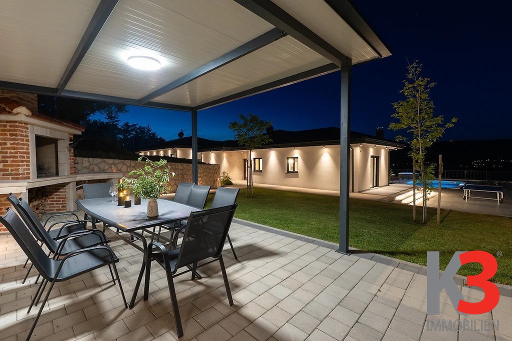 Eine moderne, hochwertig eingerichtete 150 m² große Villa steht zum Verkauf. Sie befindet sich auf einem großzügigen 1040 m² großen Grundstück in der ruhigen und idyllischen Umgebung des dalmatinischen Hinterlandes.