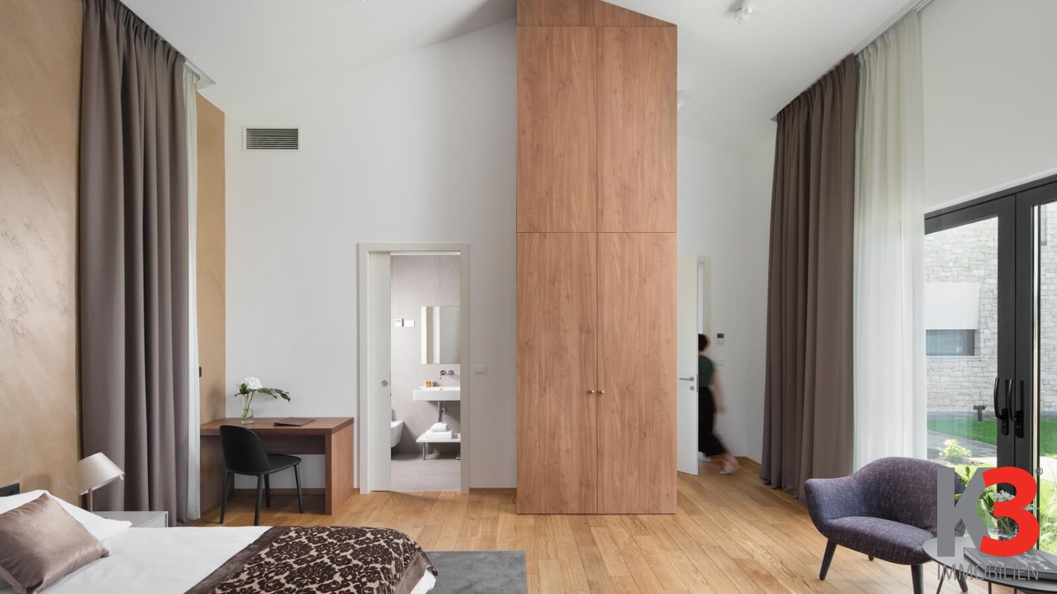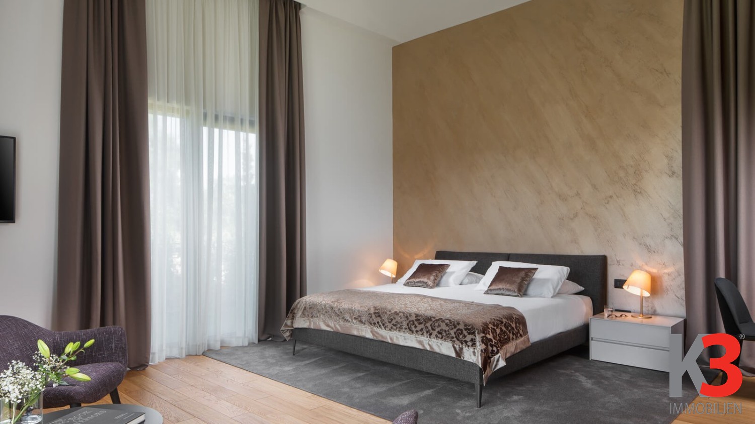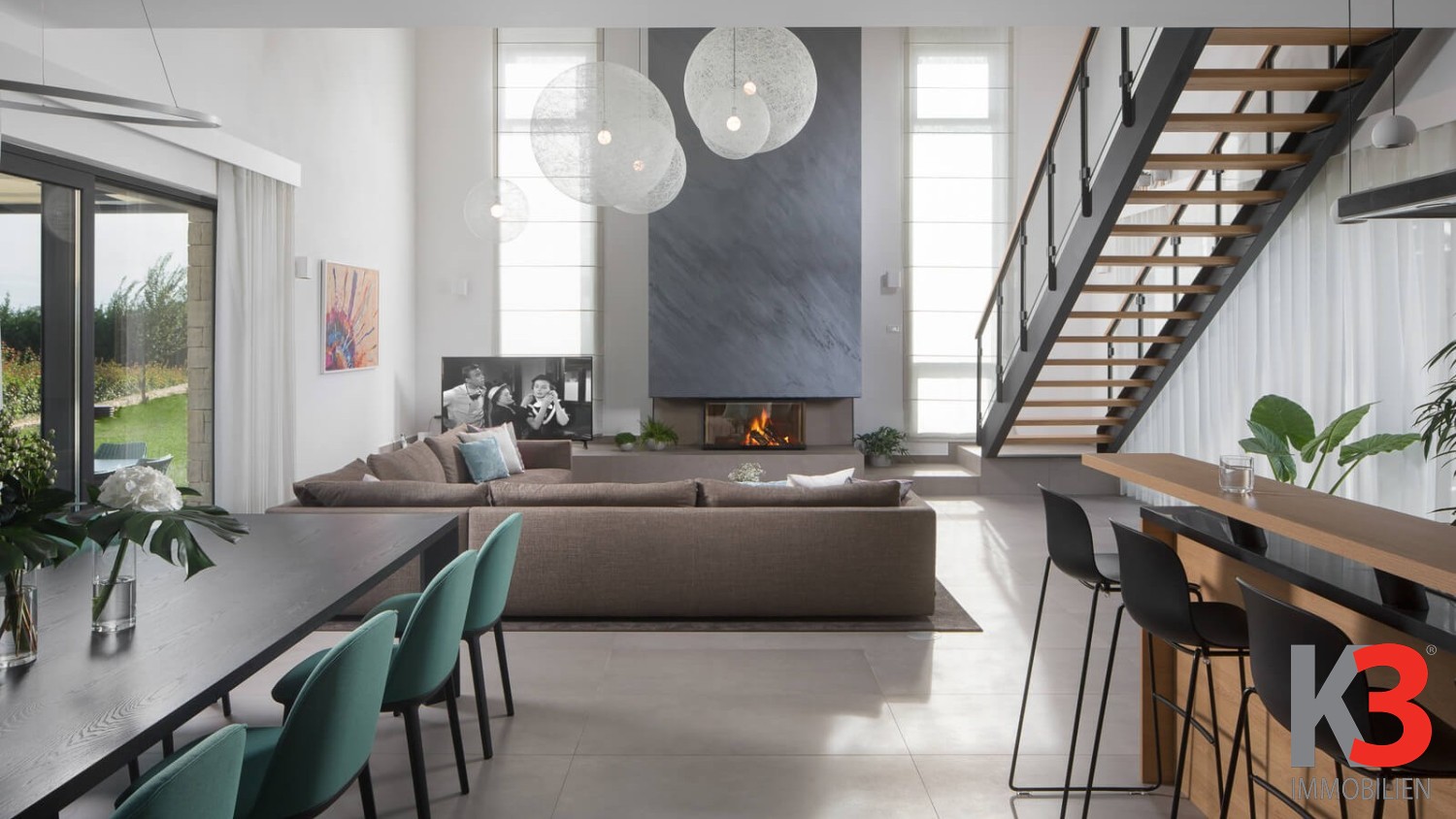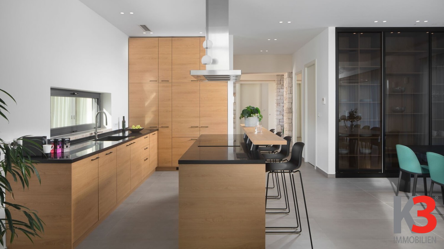 Die Villa ist als harmonische Verbindung von Ästhetik, Funktionalität und hochwertiger Bauweise konzipiert, mit klaren architektonischen Linien und zeitlosem Design, das sich natürlich in die Umgebung einfügt. Sie erstreckt sich über zwei Etagen, wobei jeder Raum sorgfältig geplant wurde, um maximalen Komfort, optimale Raumaufteilung und viel Tageslicht zu gewährleisten. Das Interieur strahlt Eleganz aus und ist mit renommierten Designermöbeln von Marken wie Poliform, Moooi, Artemide und Vitra ausgestattet, was die Exklusivität dieser Immobilie zusätzlich unterstreicht.