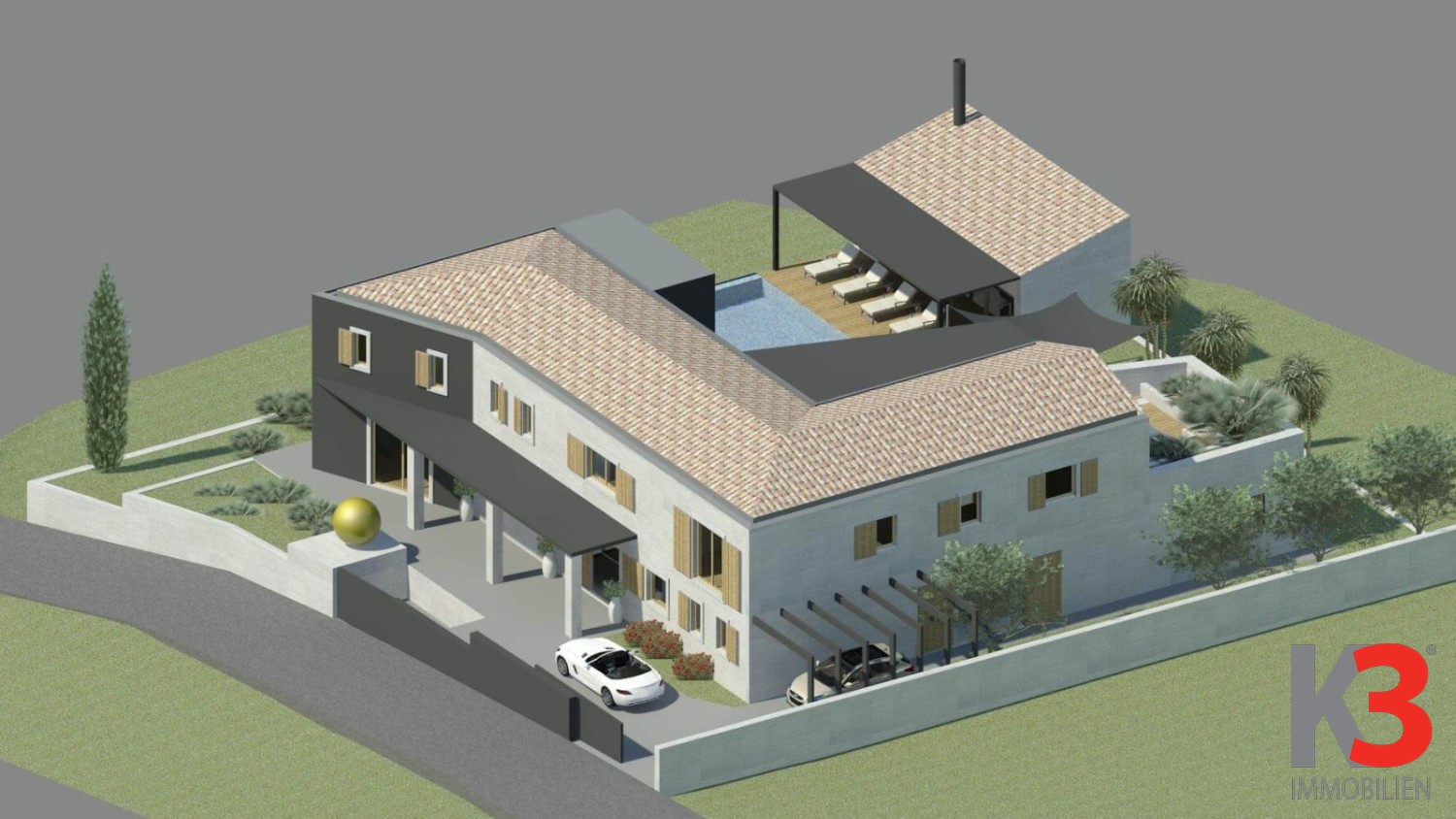 Wir präsentieren eine außergewöhnliche Investitionsmöglichkeit in Istrien—ein Grundstück mit fertigem Konzeptprojekt im charmanten Dorf Kršete, Gemeinde Buje. Die Gesamtfläche beträgt 3.906 m², davon 1.045 m² Baugrund und 2.861 m² landwirtschaftliche Fläche.