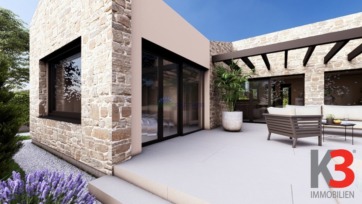 Vom Wohnzimmer aus hat man Zugang zum Sonnendeck und zur überdachten Terrasse. Der Hof wird mit wunderschönen istrischen Pflanzen dekoriert und bepflanzt.