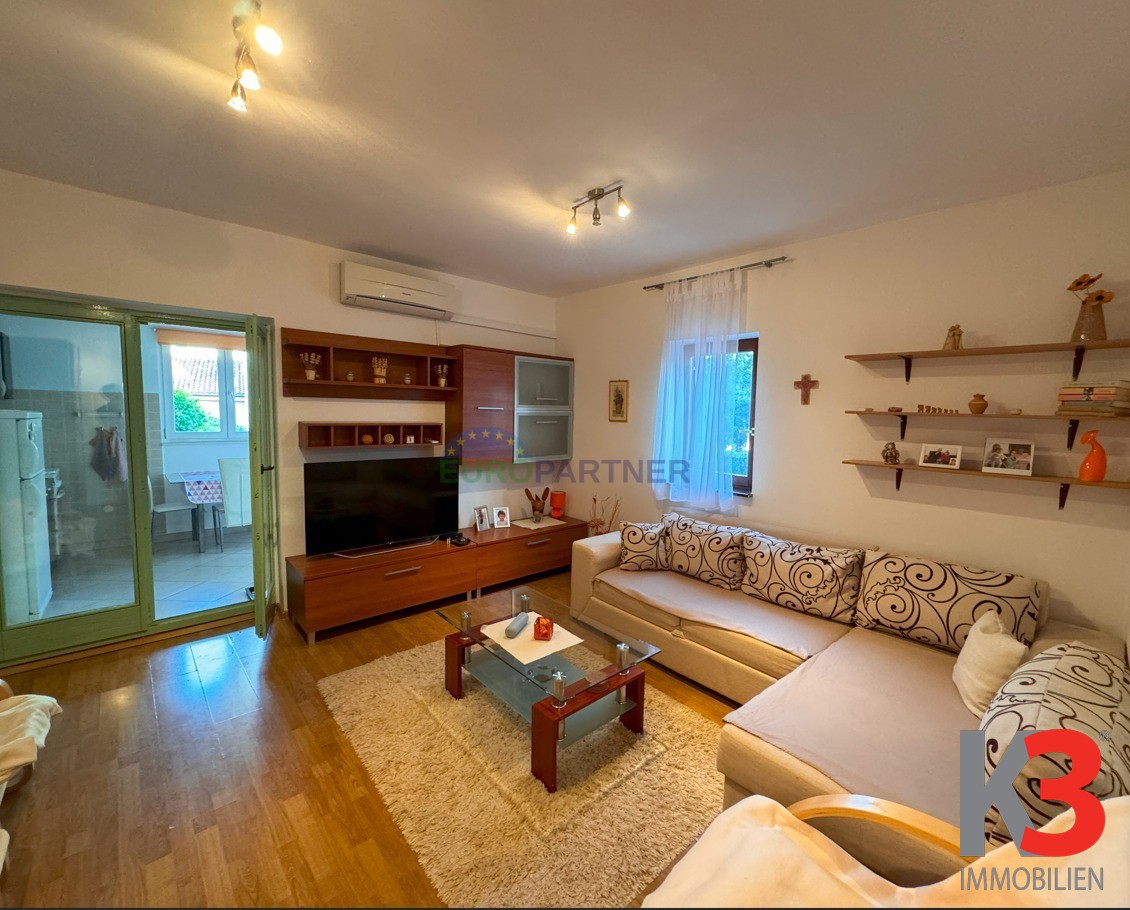 In einer der begehrtesten Lagen von Novigrad, in unmittelbarer Nähe zum Stadtzentrum und nur 500 Meter vom Meer entfernt, befindet sich diese komfortable und gut geschnittene Erdgeschosswohnung – eine seltene Gelegenheit auf dem Markt.