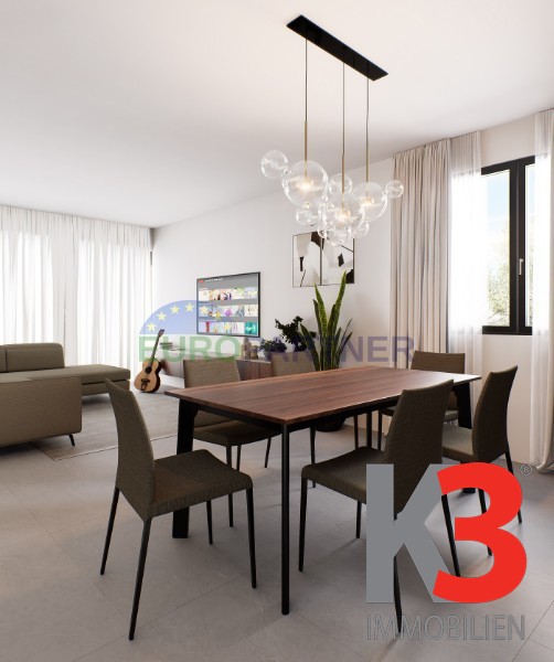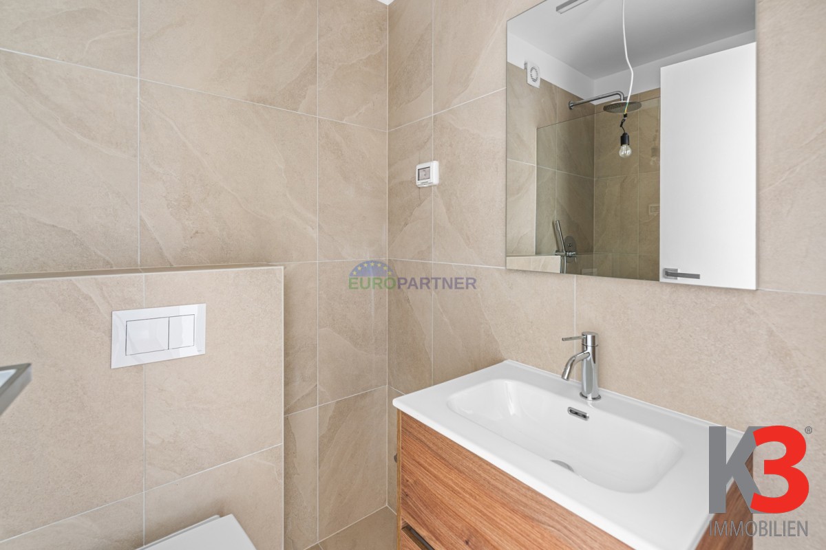 Die Wohnung verfügt über zwei große Schlafzimmer, jedes mit eigenem Badezimmer, sowie zusätzlichen Stauraum und Einbauschränke, die maximale Funktionalität und Ordnung ermöglichen. Vom Wohnzimmer gelangt man auf die große überdachte Terrasse mit Vorbereitung für eine Außenküche, zudem bietet die Wohnung einen wunderschönen privaten Garten mit automatischer Bewässerung.