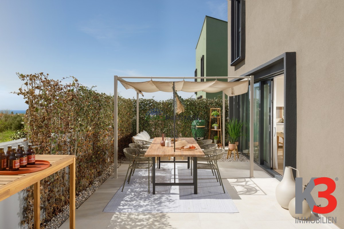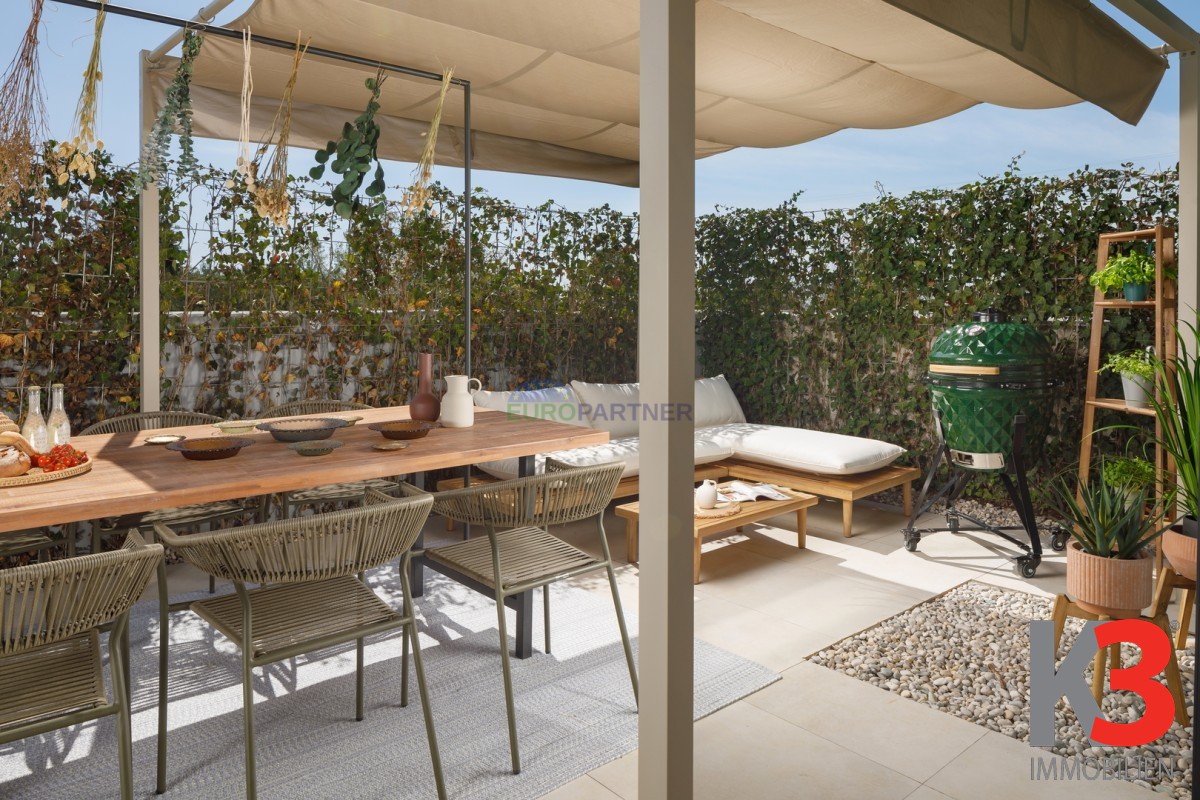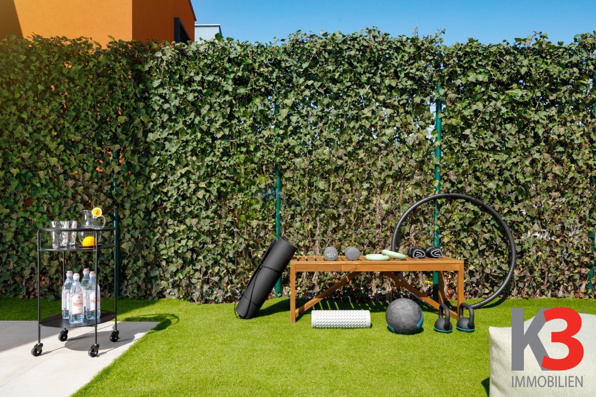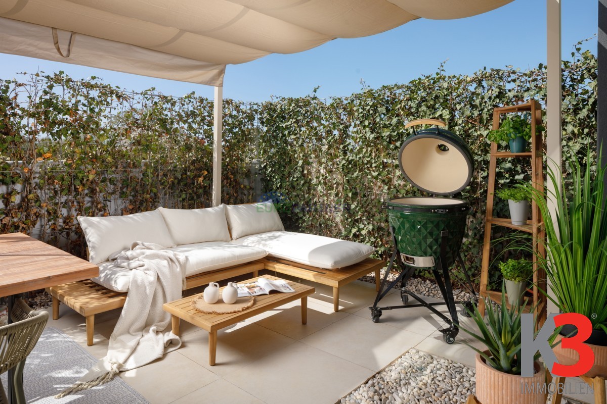 Im privaten Innenhof befindet sich eine Relax-Zone mit Grill und Essbereich im Freien – perfekt für laue Sommerabende. Vor dem Haus stehen zwei private Stellplätze zur Verfügung.