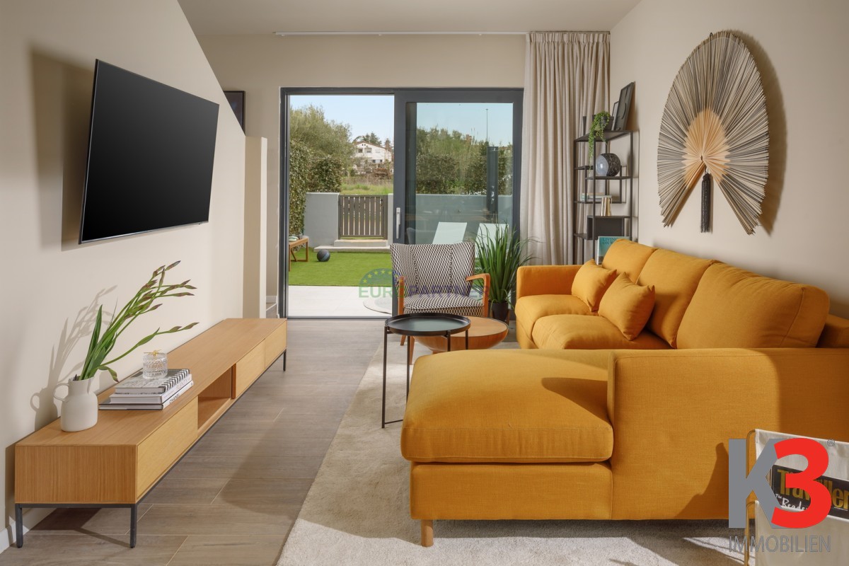 In einer der begehrtesten Lagen von Poreč, nur wenige Gehminuten vom kristallklaren Adriatischen Meer und den gepflegten Stränden entfernt, befindet sich dieses moderne und elegante Anwesen mit einer Gesamtwohnfläche von 117,01 m2. Das Haus erstreckt sich über drei Etagen und vereint auf perfekte Weise zeitgemäßen Wohnkomfort, eine durchdachte Raumaufteilung und den mediterranen Lebensstil.