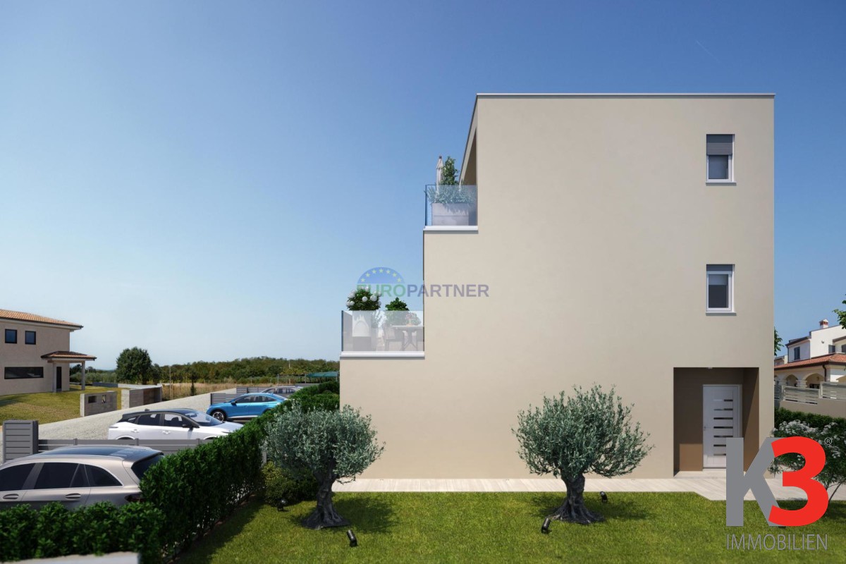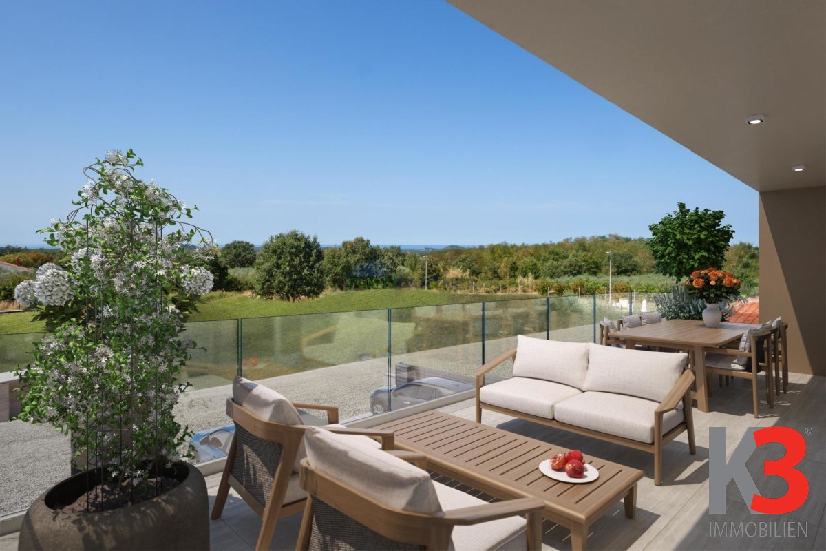 In einer ruhigen Gegend unweit von Poreč, wo sich die Gelassenheit der istrischen Landschaft mit der Nähe zum Meer verbindet, befindet sich eine moderne Wohnung, die Schlichtheit, Wärme und Eleganz ausstrahlt.