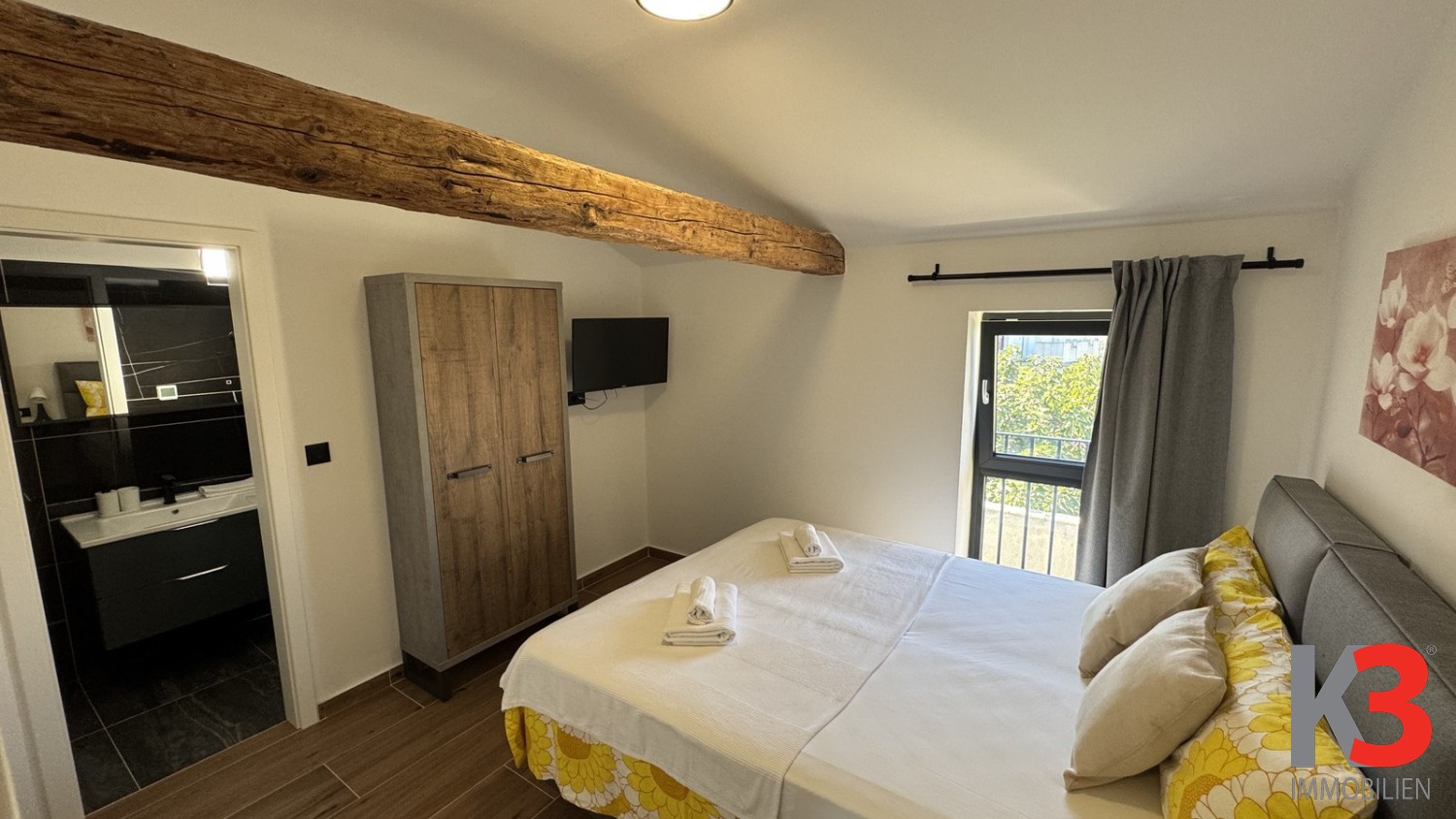- Renovierte Holzbalken, die dem Raum Wärme und authentischen istrischen Charme verleihen