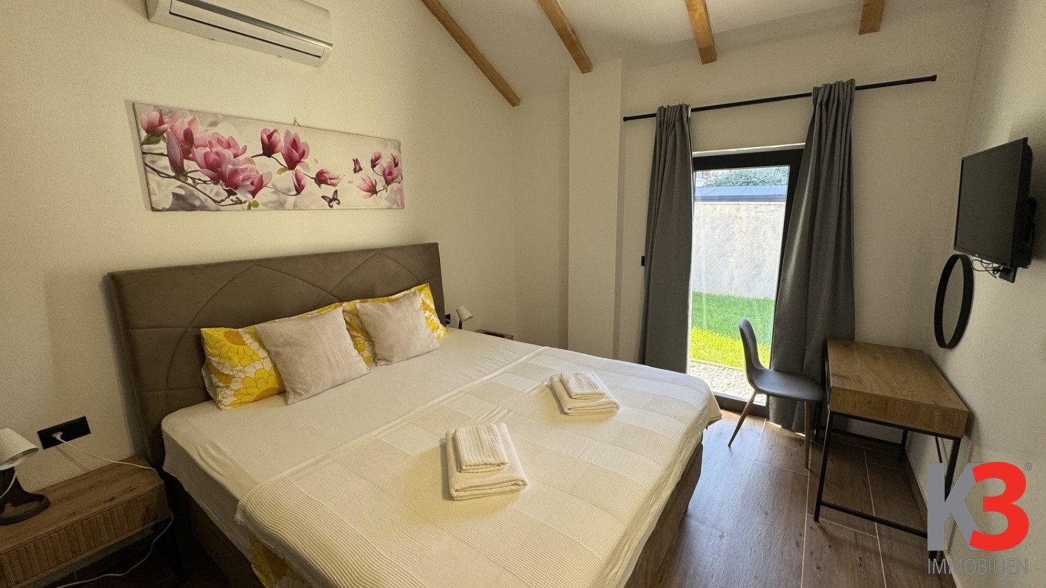 Zum Verkauf steht ein komplett renoviertes Steinhaus in einem idyllischen Dorf, nur 8 Kilometer vom Zentrum von Poreč entfernt, einer der schönsten Küstenstädte Istriens.