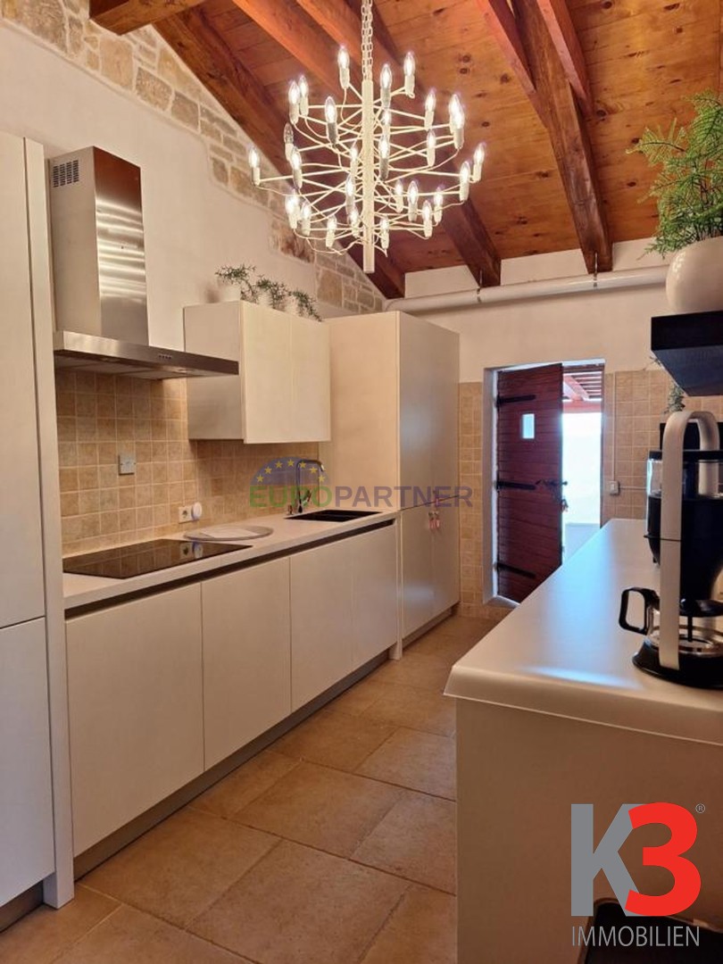 Das Innere des Hauses ist mit einer modernen und hochwertigen deutschen Küche ausgestattet, die die täglichen kulinarischen Unternehmungen erleichtert. Das Haus ist mit Designer-Möbeln eingerichtet. Gasheizung und Klimaanlagen sorgen ganzjährig für eine optimale Temperatur und bieten Komfort, unabhängig von den äußeren Wetterbedingungen.