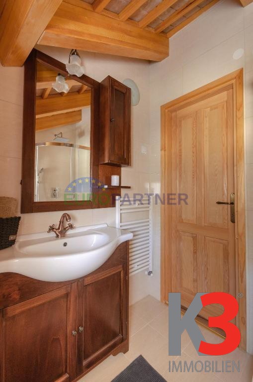 Das Haus befindet sich am Ende einer Häuserreihe, was zusätzliche Ruhe und Privatsphäre gewährleistet. Mit einer Gesamtwohnfläche von über 200 m2 umfasst es das Haupthaus und mehrere Nebengebäude. Im Erdgeschoss befinden sich zwei getrennte Bereiche: auf der einen Seite ein großzügiges Wohnzimmer mit authentischem Kamin und Gäste-WC, auf der anderen Seite eine modern ausgestattete Küche mit Essbereich. Im ersten Stock liegen zwei Schlafzimmer, jedes mit eigenem Bad, während sich im obersten Stockwerk zwei weitere Schlafzimmer mit jeweils eigenem Bad befinden – ideal für eine größere Familie oder Gäste.
