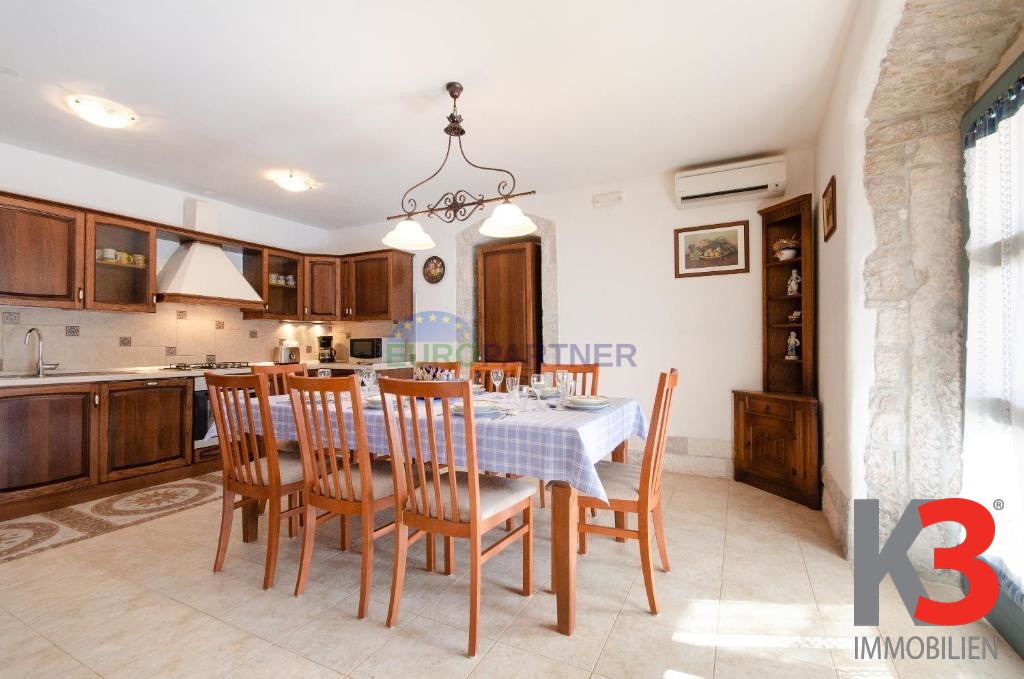 Wir präsentieren ein wunderschönes, vollständig renoviertes Steinhaus, das traditionellen istrischen Charme mit dem Komfort modernen Wohnens perfekt vereint. In ruhiger Lage, umgeben von viel Grün und nur zehn Kilometer von Rovinj entfernt, bietet diese Immobilie ein hohes Maß an Privatsphäre, Komfort und vielseitigen Nutzungsmöglichkeiten – sei es als Familienwohnsitz, Feriendomizil oder als sichere Investition in den Tourismus.