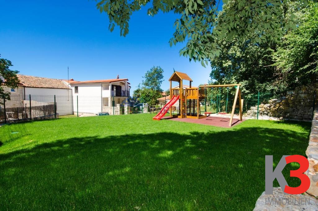 Für Familien mit Kindern oder Eigentümer, die eine touristische Vermietung planen, ist der private, eingezäunte Kinderspielplatz mit einer Fläche von 120 m2 ein großer Vorteil.
