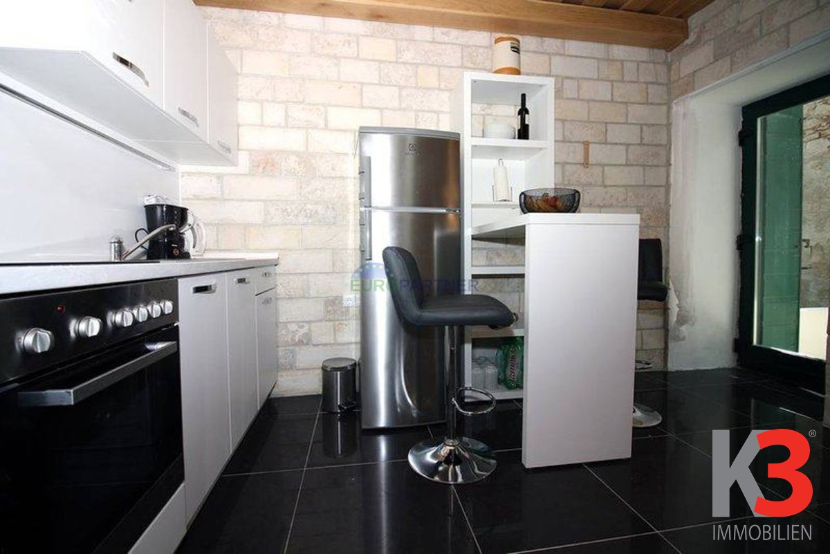 Das kleines Haus zum Verkauf in unmittelbarer Nähe des Meeres in Tisno. Das Haus hat 60 m2, aufgeteilt auf zwei Etagen.