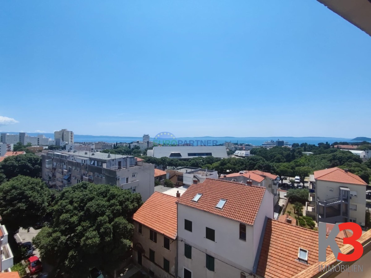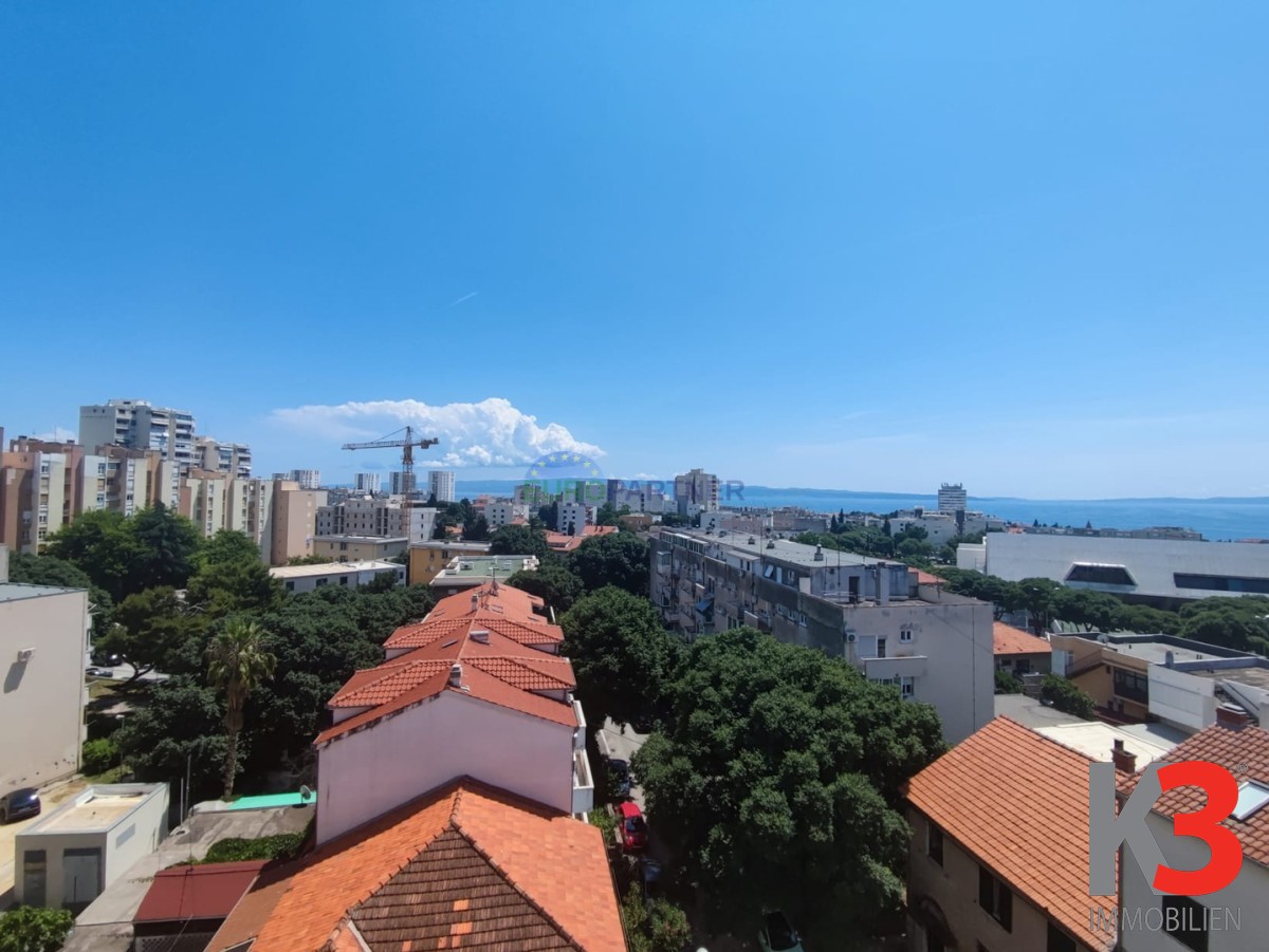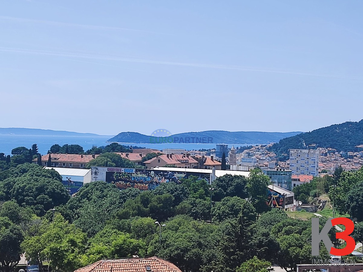 Die Wohnung befindet sich in einem Gebäude mit Aufzug und besteht aus einem großen Wohnzimmer mit Zugang zu einer Terrasse mit Blick auf das Zentrum von Split, das Meer und die Inseln, einer Küche mit Esszimmer und Zugang zu einer separaten Terrasse , 3 große Schlafzimmer, jedes mit eigener Loggia.