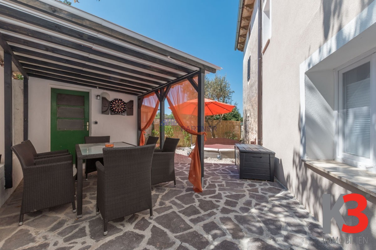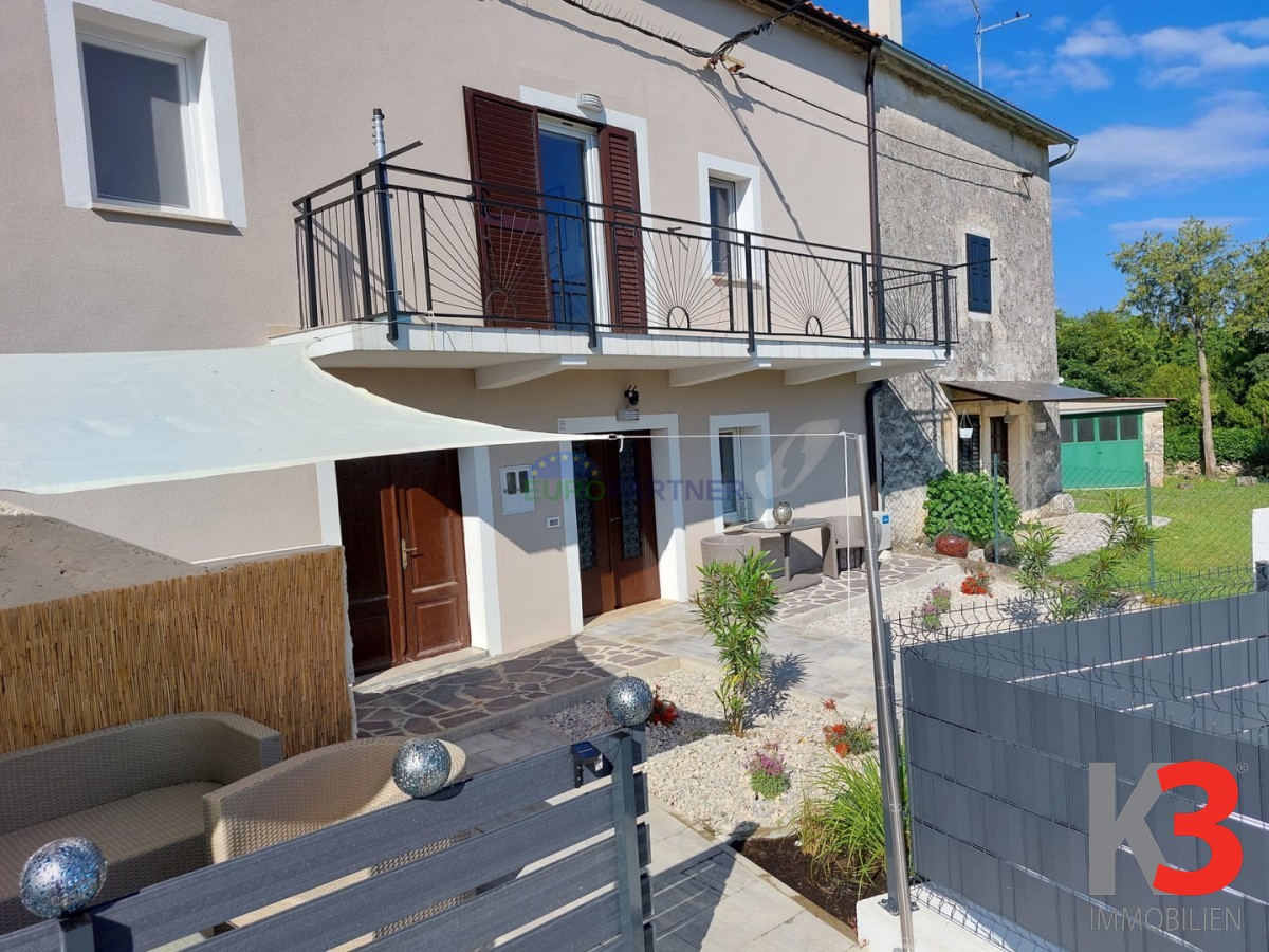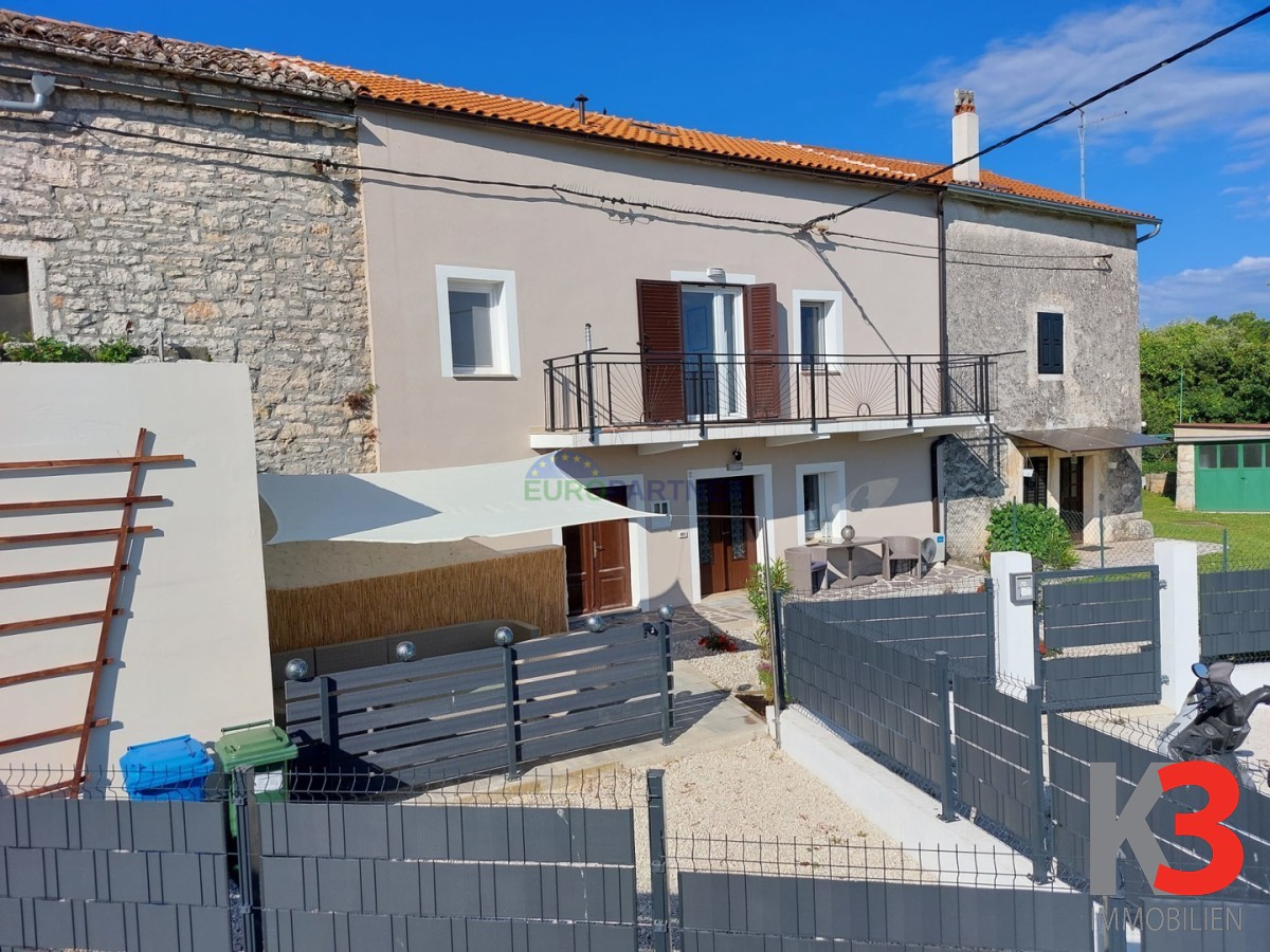 Das Reihenhaus, das wir Ihnen heute vorstellen, liegt nur wenige Kilometer von Sv. Lovreča, mit einer Gesamtwohnfläche von 120 Quadratmetern verteilt auf drei Etagen – Erdgeschoss, erster Stock und Dachboden.