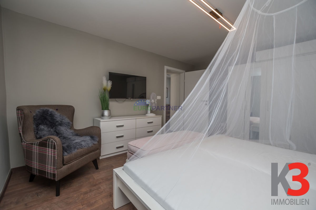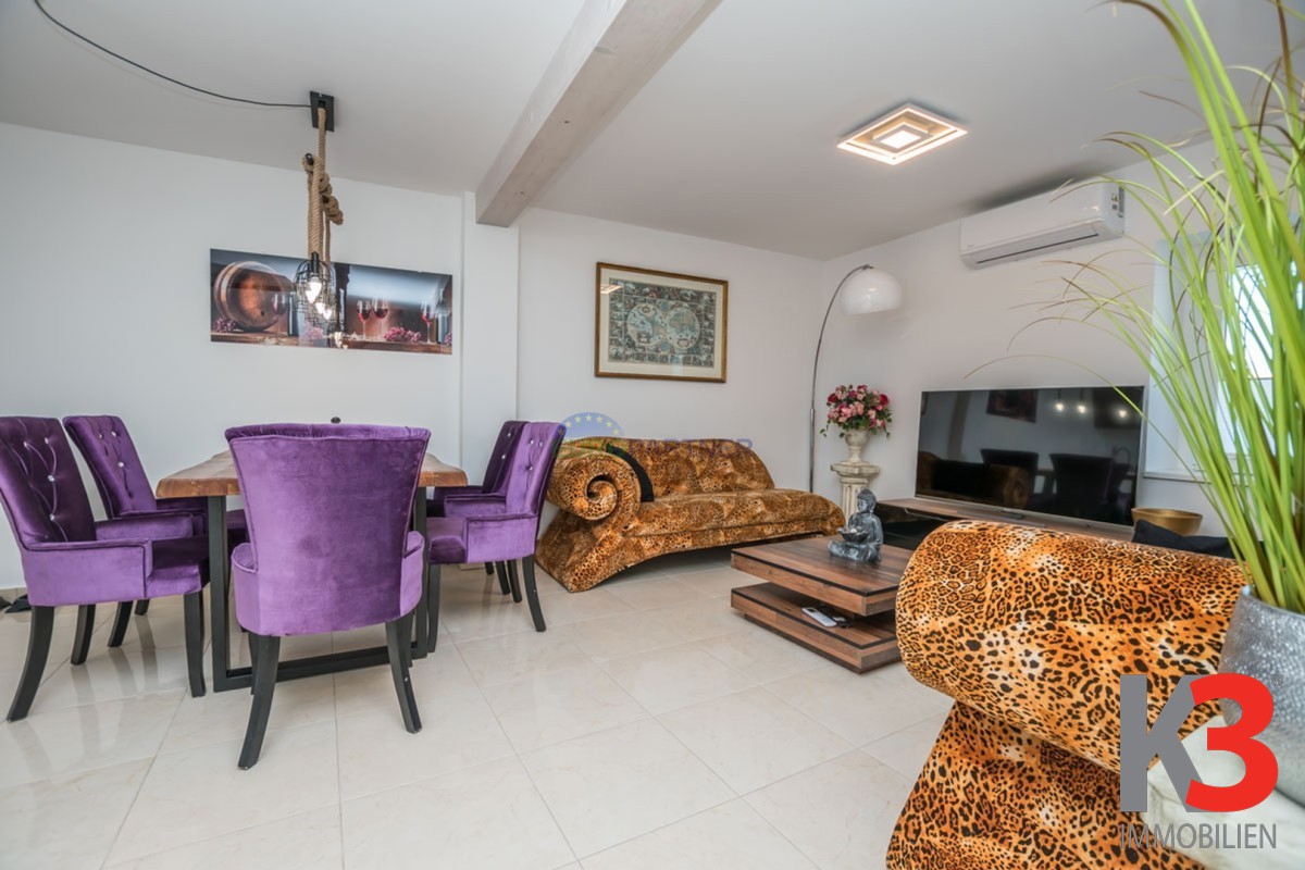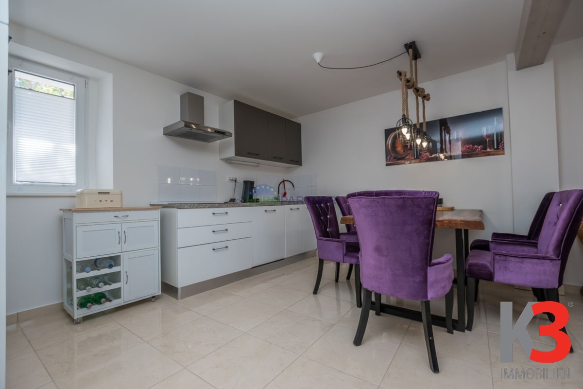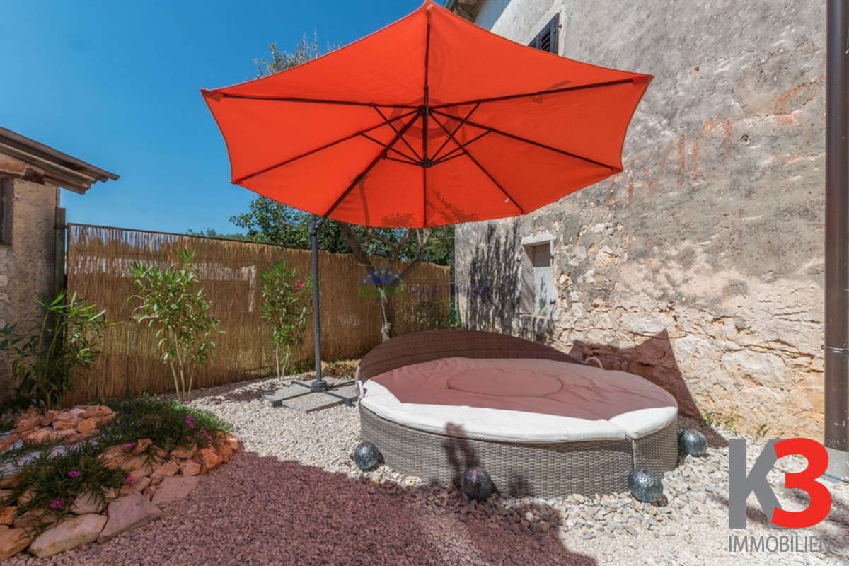 Das Reihenhaus, das wir Ihnen heute vorstellen, liegt nur wenige Kilometer von Sv. Lovreča, mit einer Gesamtwohnfläche von 120 Quadratmetern verteilt auf drei Etagen – Erdgeschoss, erster Stock und Dachboden.