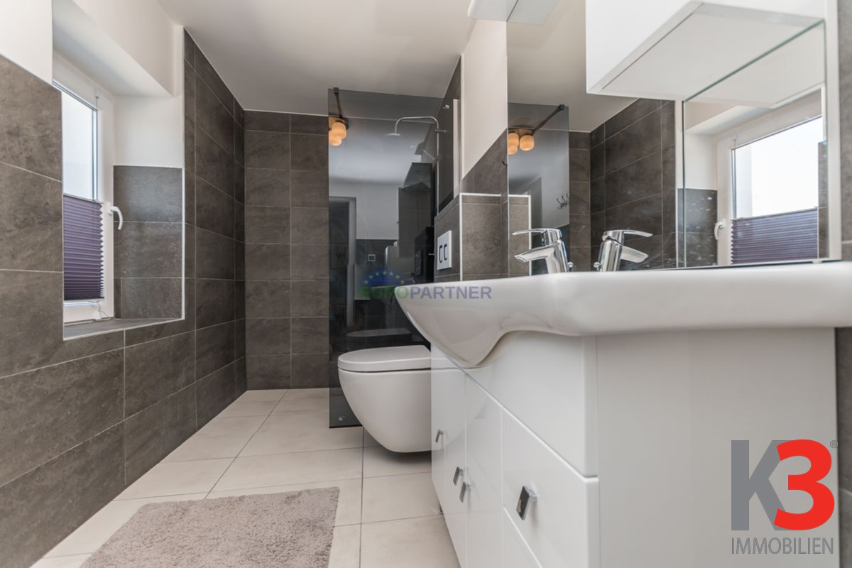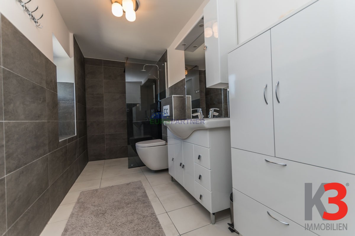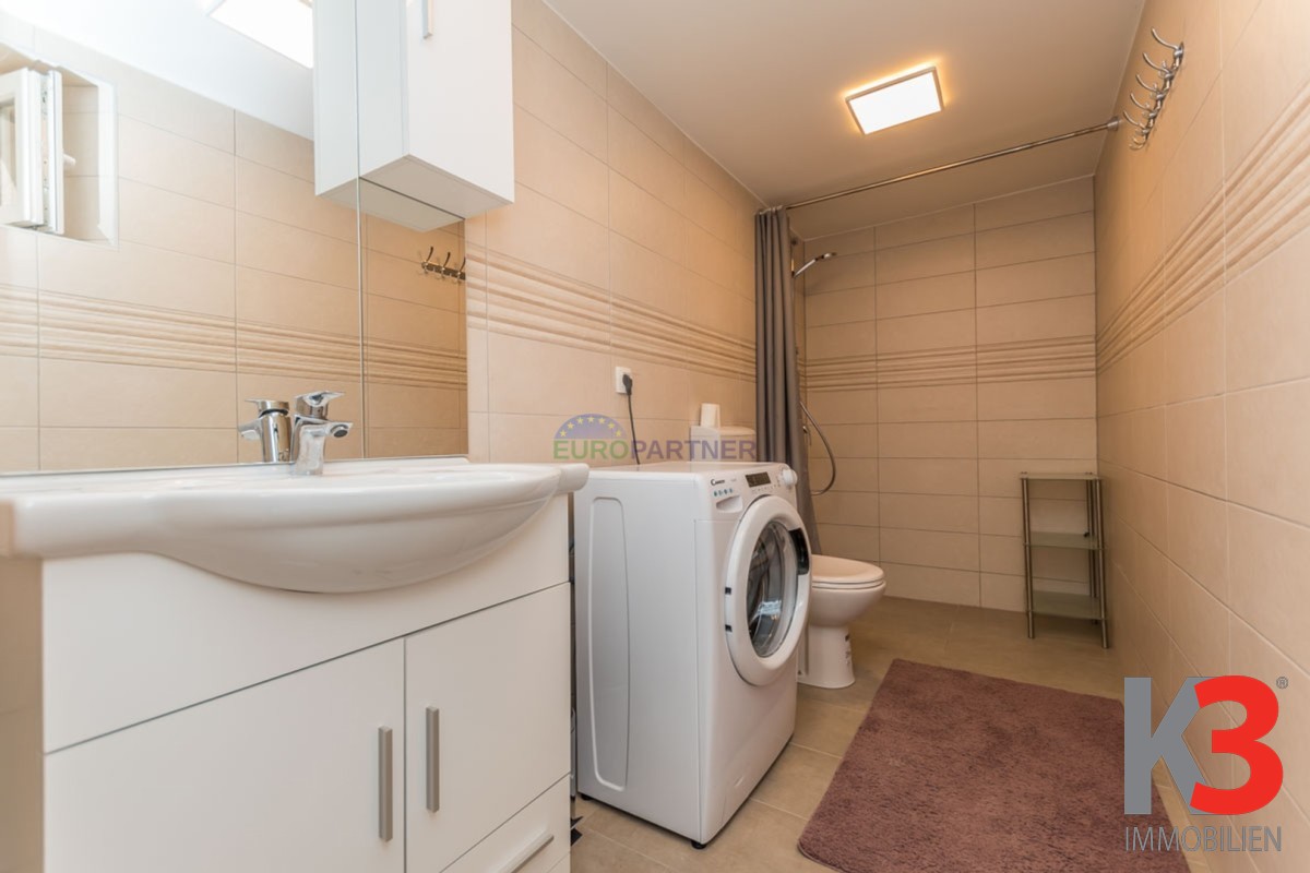 Im Erdgeschoss des Hauses führt ein Eingang zu einem separaten Raum, der jetzt als Abstellraum dient, aber problemlos in jede andere Form von Wohnraum umgewandelt werden kann, während der Haupteingang des Hauses zu einem Flur führt, den Sie betreten ein Badezimmer und führt auf der anderen Seite zu einem modern eingerichteten Wohnzimmer, das in der Erweiterung mit dem Esszimmer und der Küche verbunden ist, und dem Außengarten auf der Rückseite des Hauses.