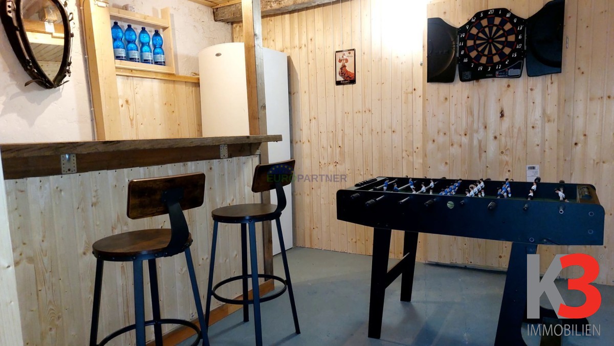 Eine Innentreppe führt in den ersten Stock, wo sich drei Schlafzimmer, ein Badezimmer und ein Kleiderschrank befinden.