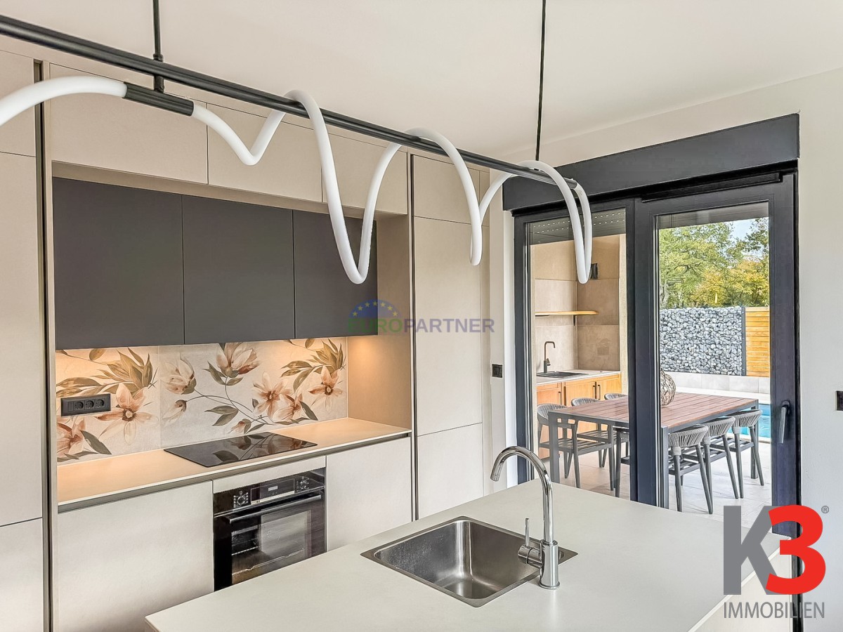 Ein wunderschönes, modernes Fertighaus mit Pool steht zum Verkauf. Es befindet sich in ruhiger Lage, nur 5 km vom Zentrum von Poreč und dem Meer entfernt. Diese attraktive Immobilie vereint modernes Design, Funktionalität und mediterranen Lebensstil.