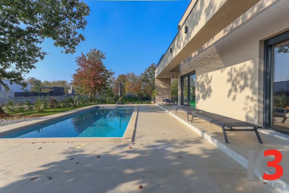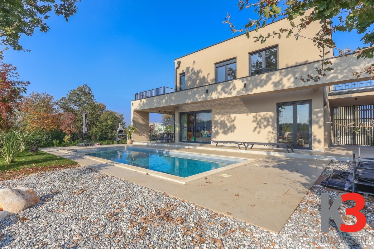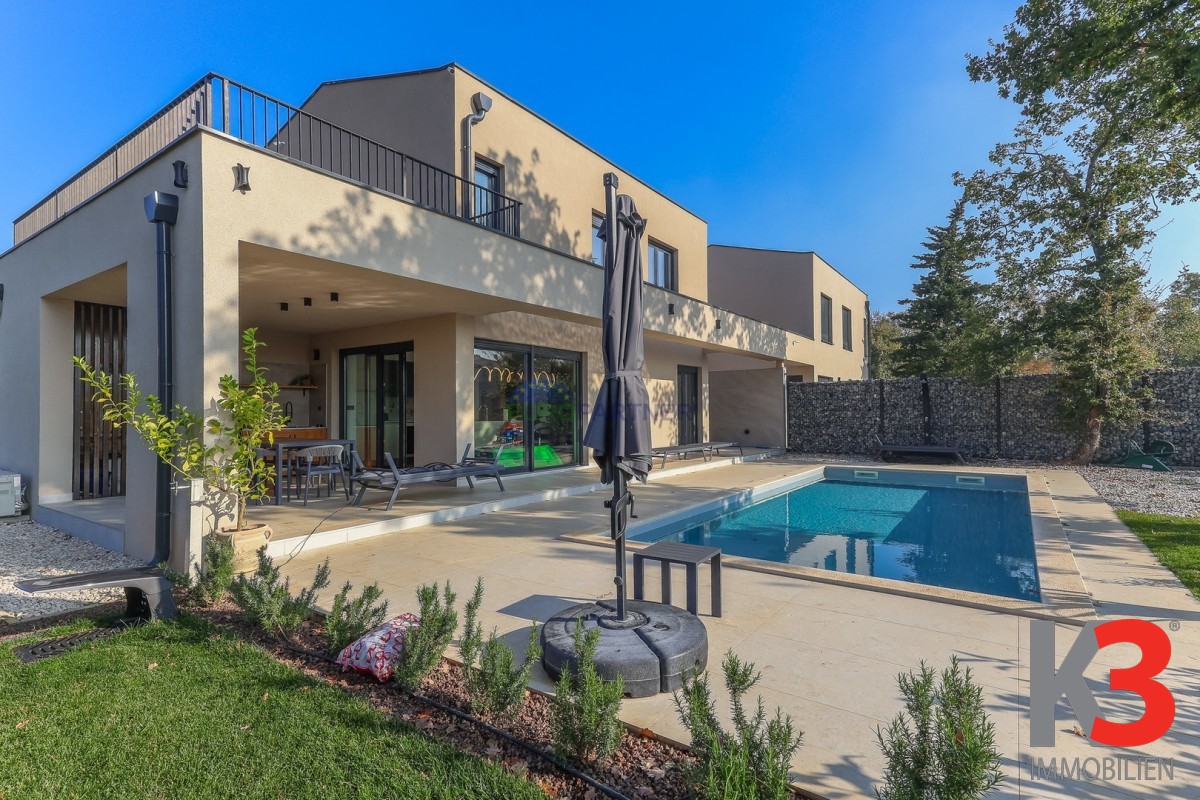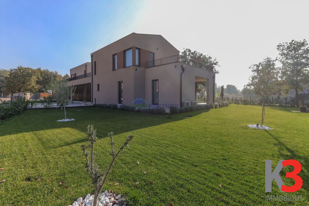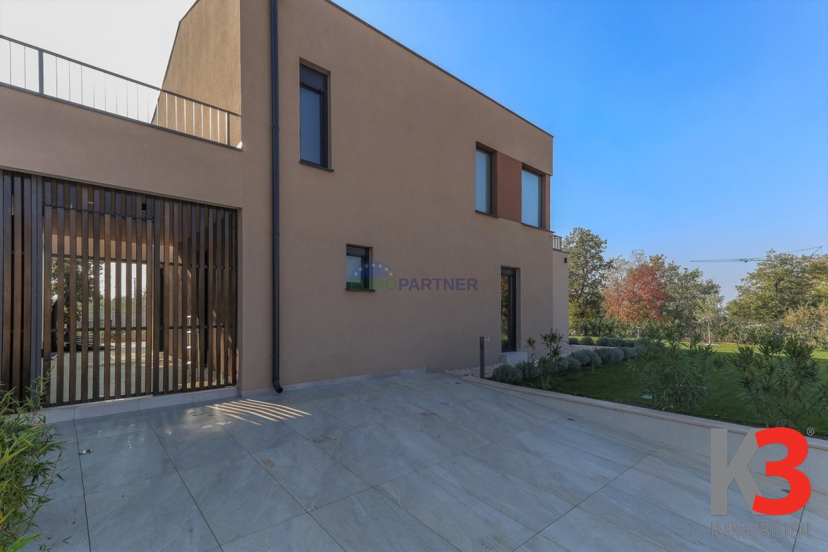 In ruhiger und idyllischer Lage, nur 5 km von Poreč entfernt, befindet sich dieses wunderschöne, modern gestaltete und neu erbaute Fertighaus.