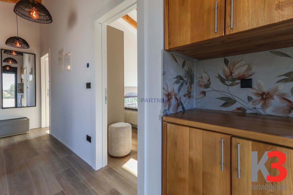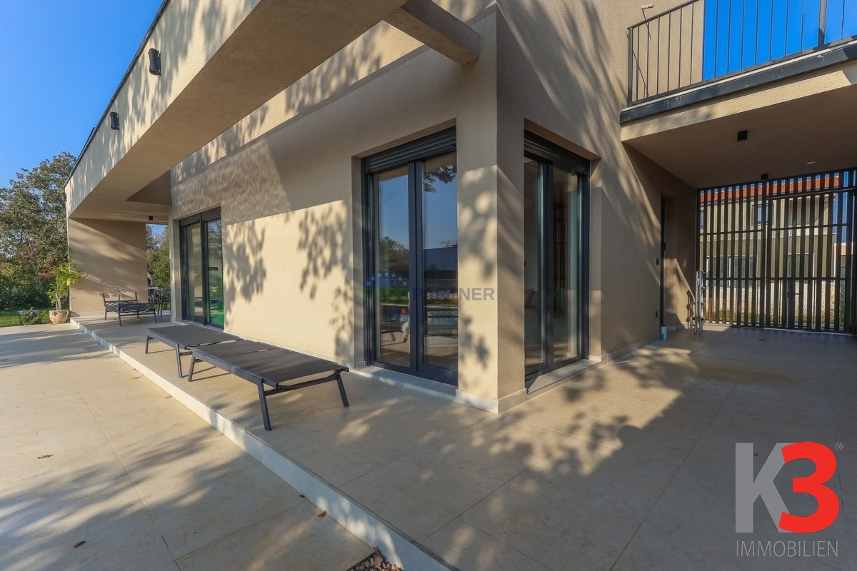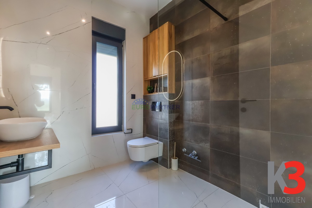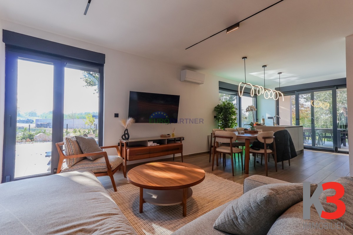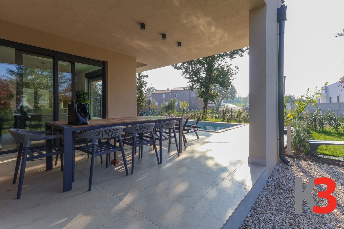 In ruhiger und idyllischer Lage, nur 5 km von Poreč entfernt, befindet sich dieses wunderschöne, modern gestaltete und neu erbaute Fertighaus.