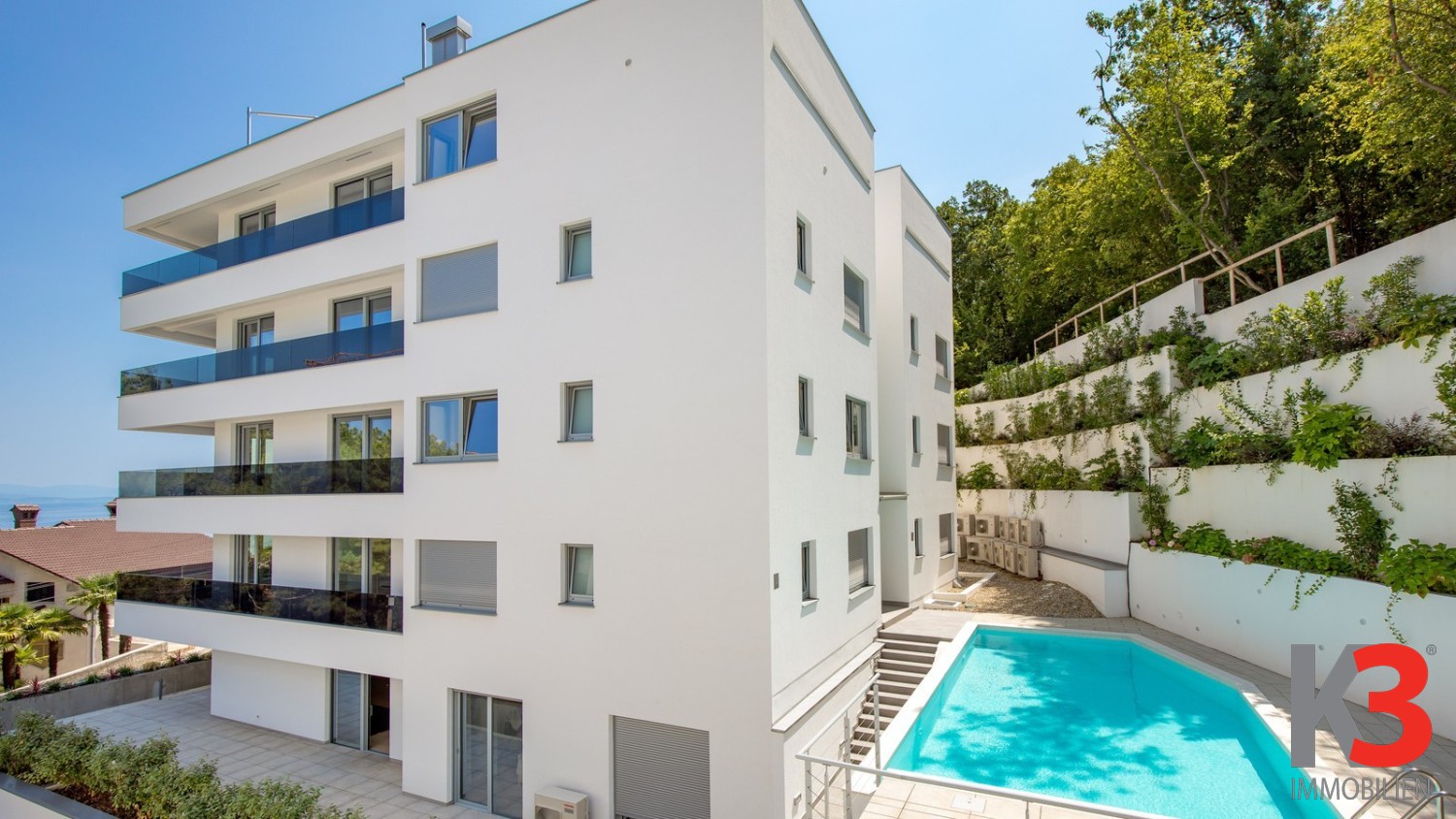 Das Gebäude wurde nach höchsten Standards moderner Architektur errichtet, mit besonderer Aufmerksamkeit für jedes Detail, was eine außergewöhnliche Lebensqualität in einem der schönsten Teile von Opatija garantiert.