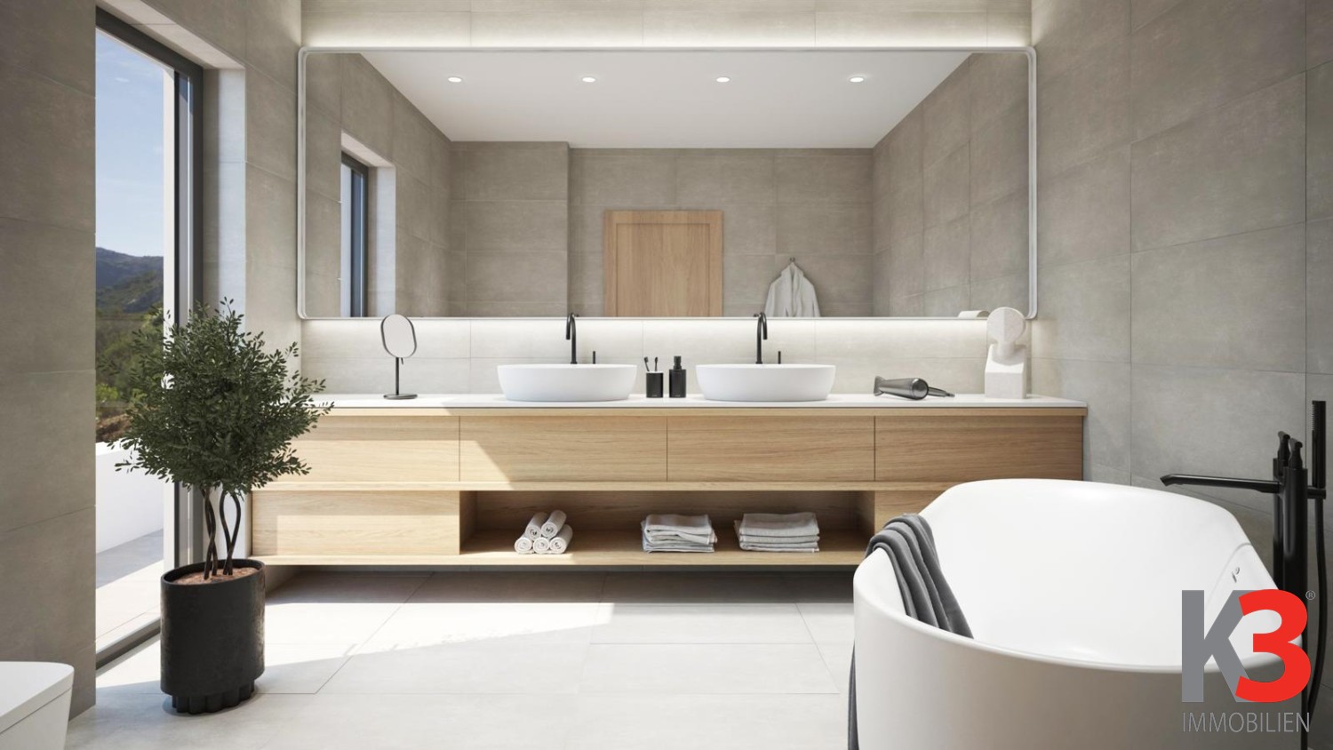 Es besteht aus einem großzügigen Wohnzimmer mit Essbereich, einer Küche, drei Schlafzimmern, jeweils mit eigenem Badezimmer, einer großen Terrasse, zwei Ankleideräumen und einem Gäste-WC.